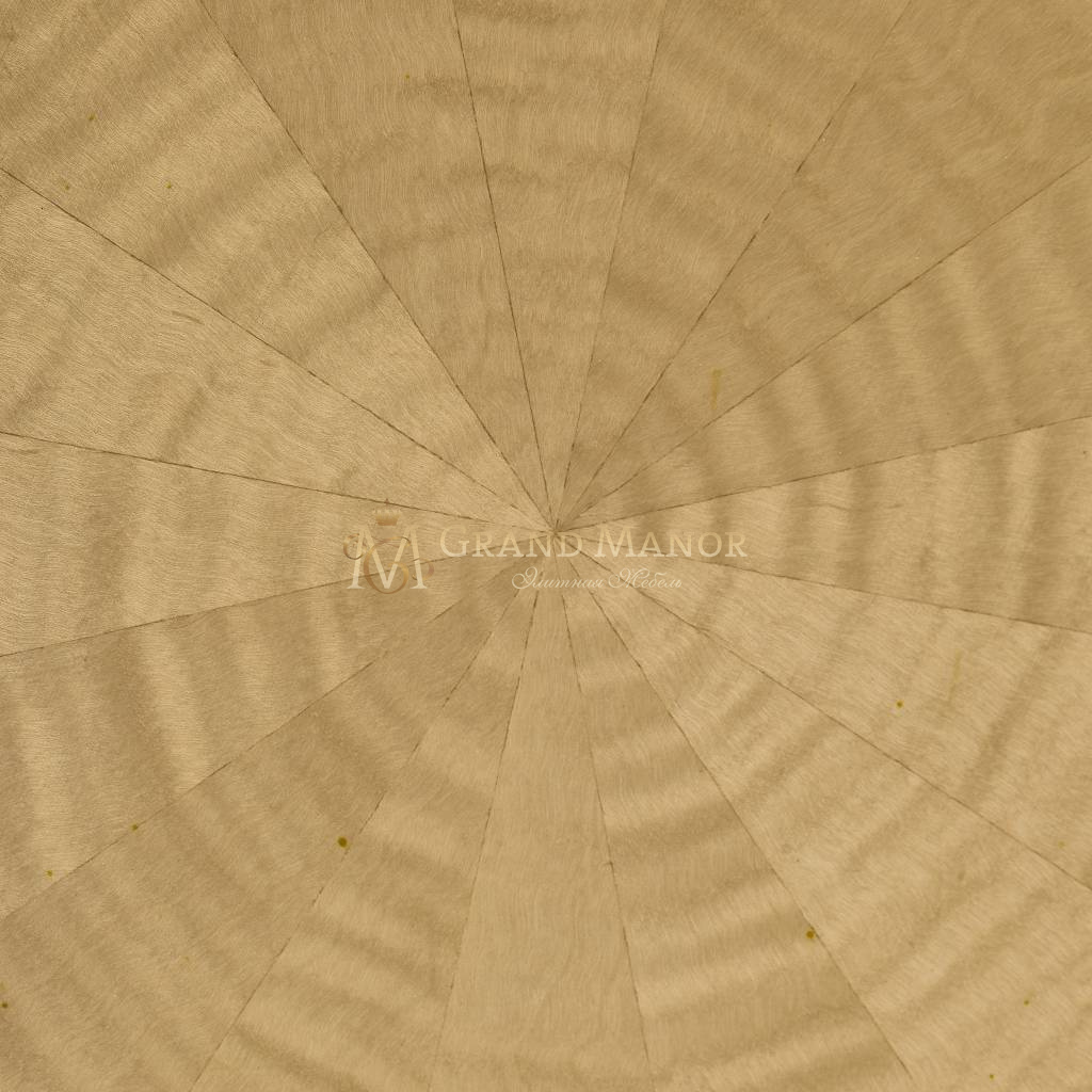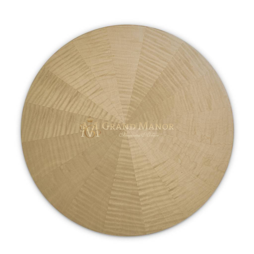 Круглая столешница с рисунком из шпона в тон основанию.