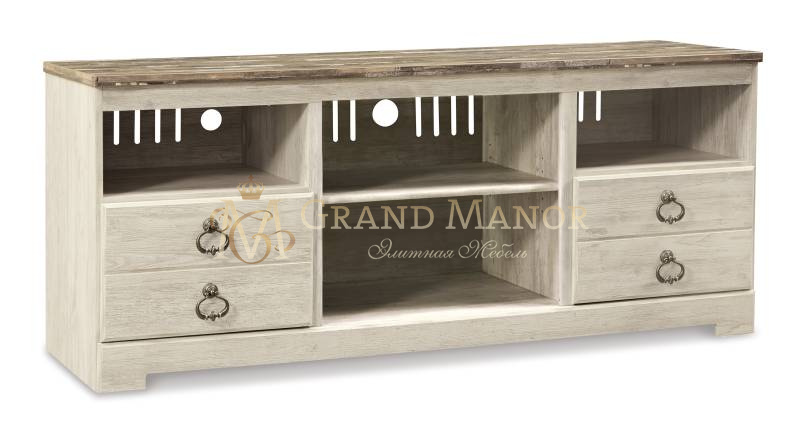- 2 выдвижных ящика, 2 отсека для мультимедиа, вырезы для проводов и съемная центральная полка.
