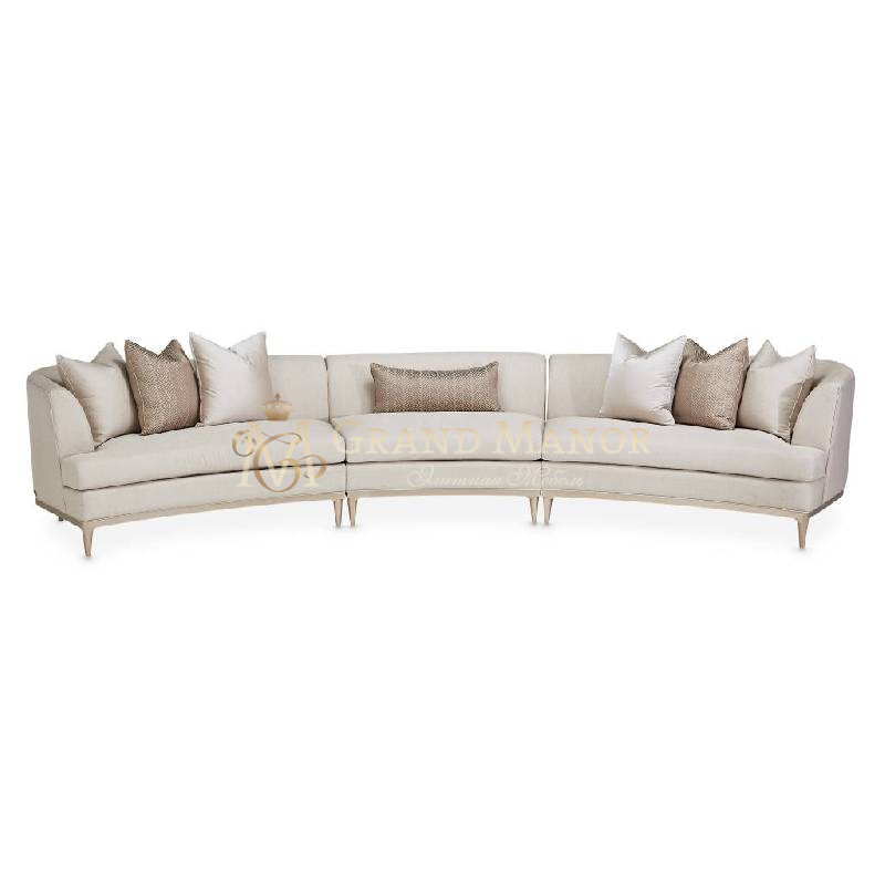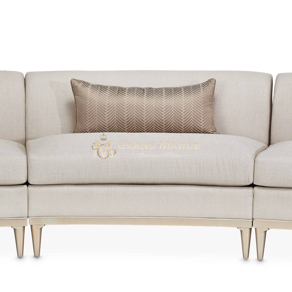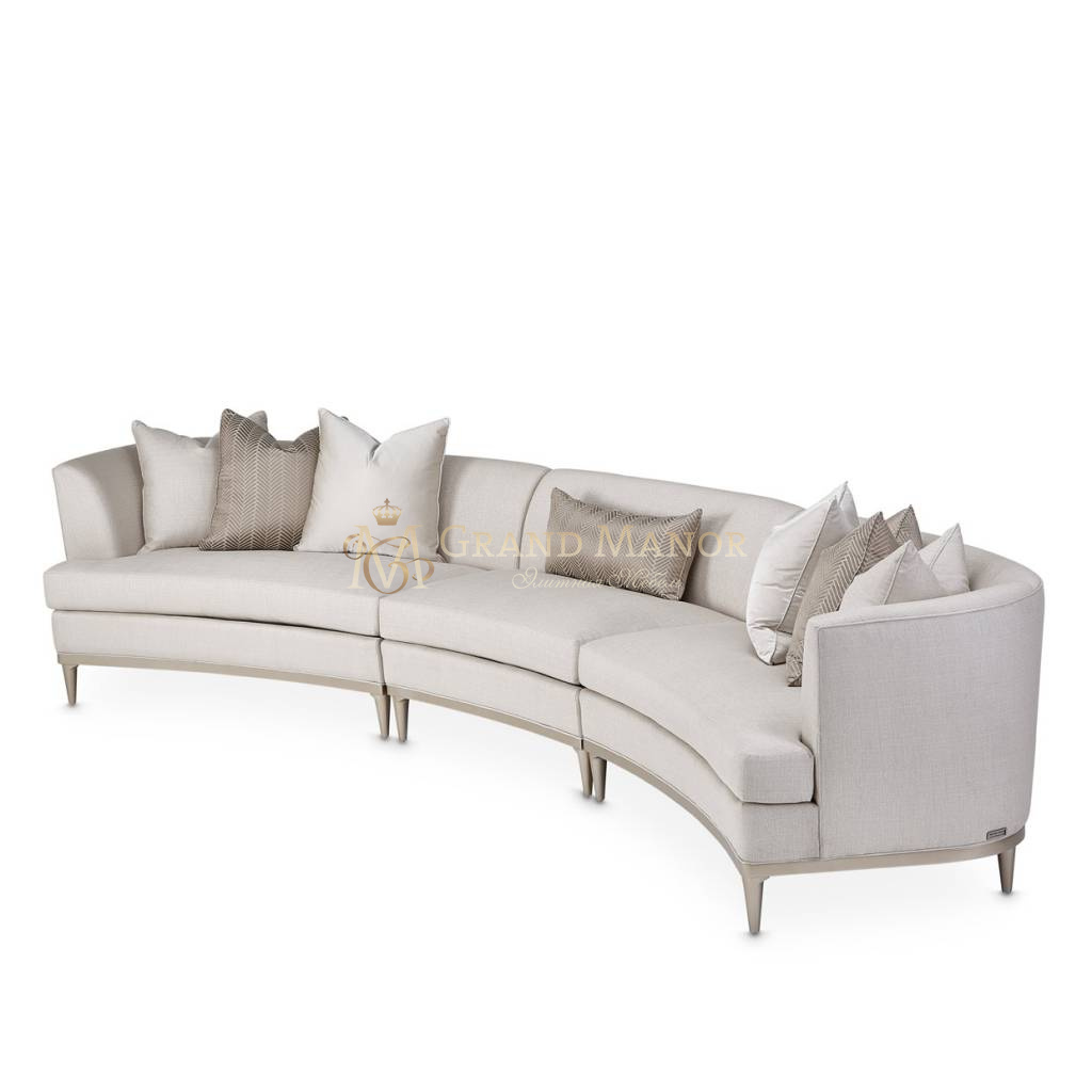 Оформление вашей гостиной по индивидуальному заказу еще никогда не было таким простым и красивым! Трехсекционный диван Malibu Crest отличается роскошным изгибом и легко расставляемыми деталями. Соединяете ли вы все три части вместе или используете центральное кресло без подлокотников отдельно, внешний вид вашей гостиной полностью в ваших руках.