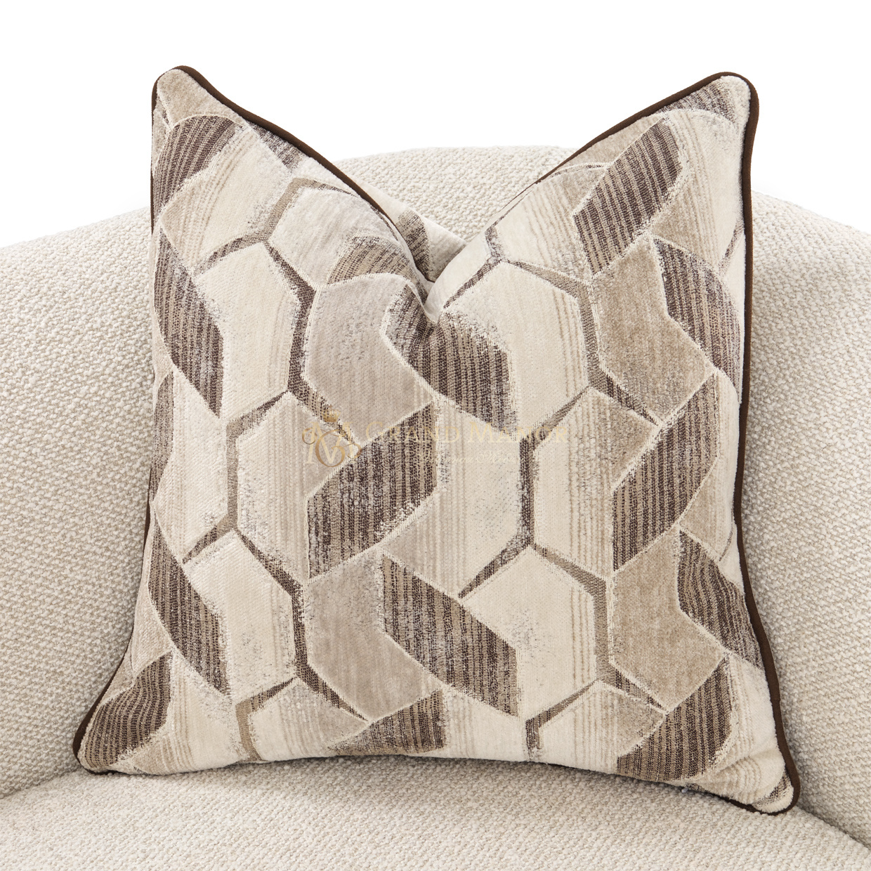 Мягкая текстура плотной ткани из плюша и разноцветной пряжи располагает к расслаблению, а вставки из тростника цвета эспрессо создают поразительный контраст.