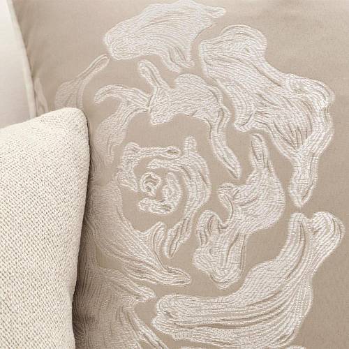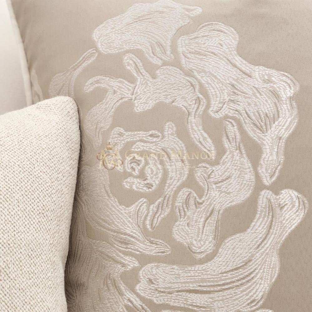 Спинка с рисунком: Обратная сторона дивана украшена ярким цветочным принтом в виде камелии, превращающим его в функциональное произведение искусства.