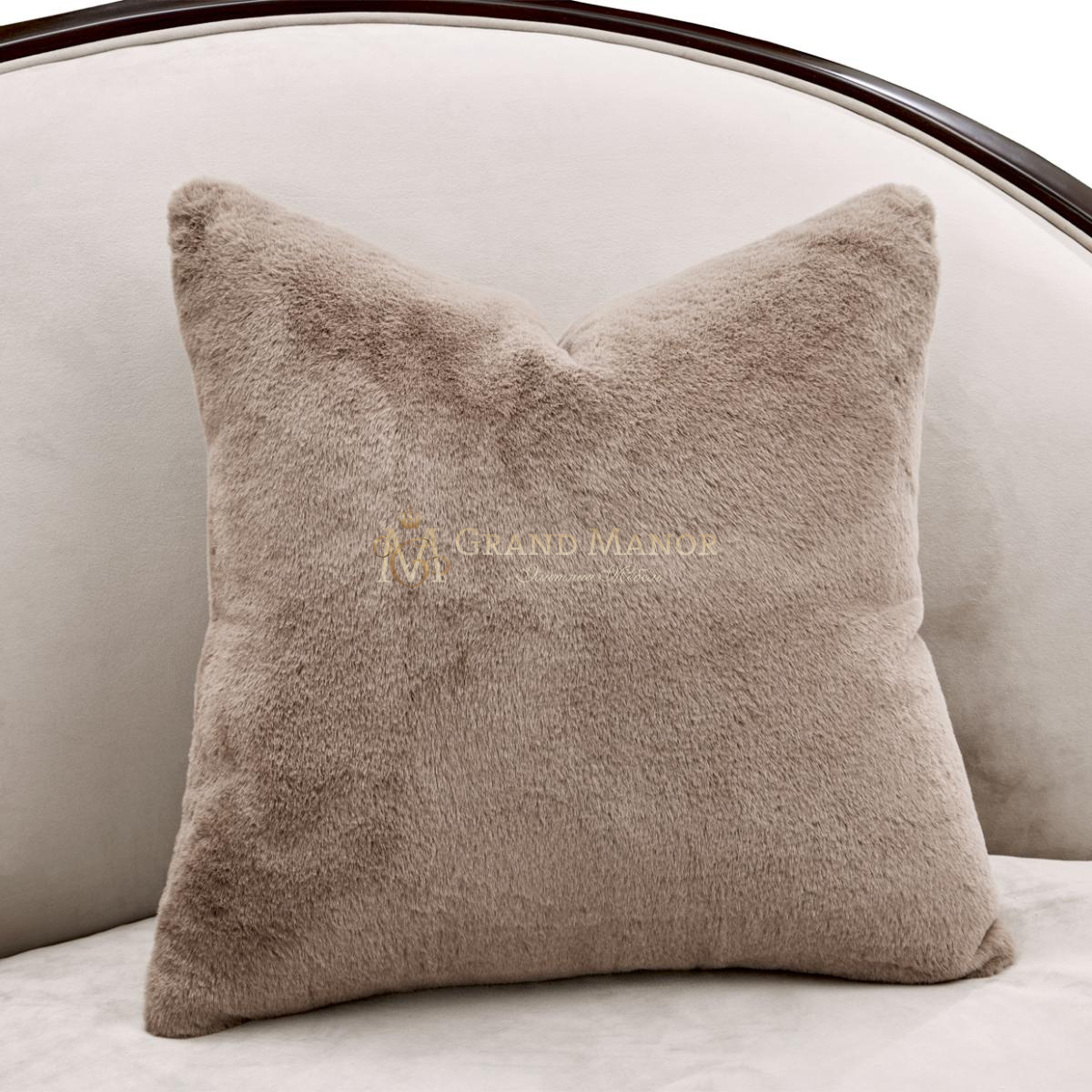 Акцентные подушки набиты перьями и имеют чехлы на молнии.