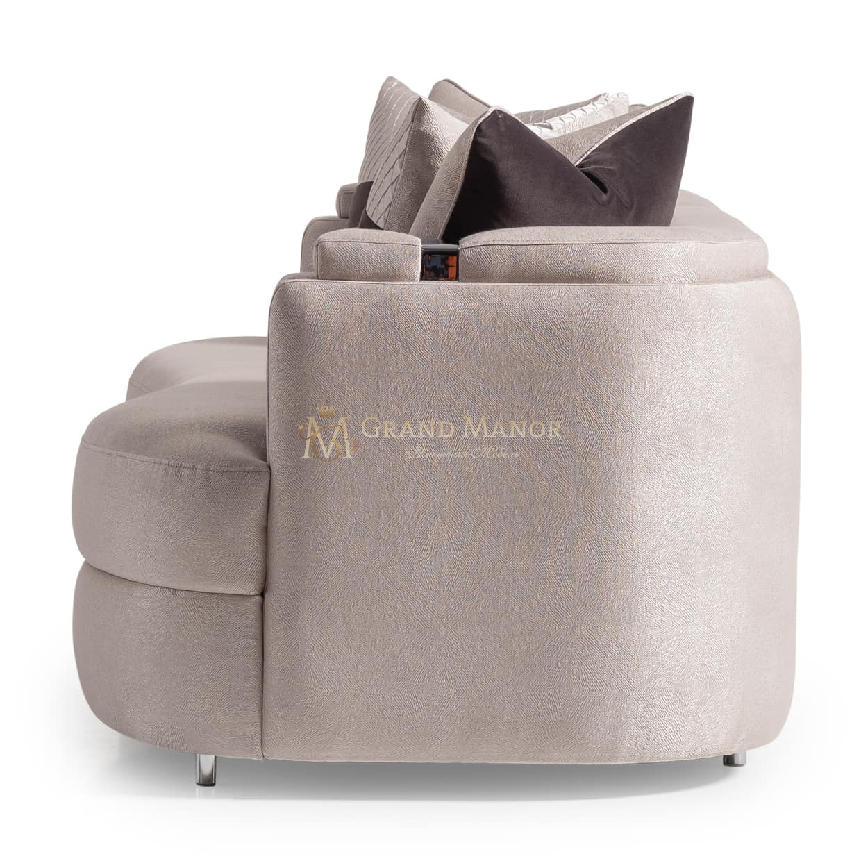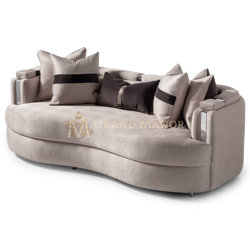 Диван Carmela поражает своими изогнутыми линиями, обтянут красивой жаккардовой тканью и украшен уникальными акцентными подушками.