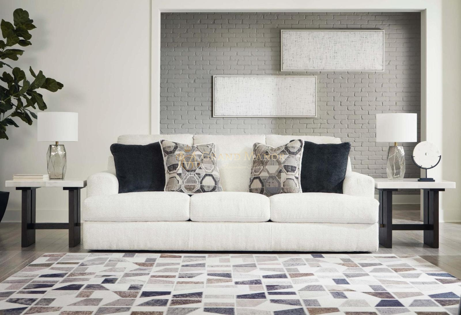 Жаждете непринужденной изысканности? Этот диван поможет вам. Совершенно современный каркас удерживает большие подушки ультрамягкого нейтрального оттенка, создавая атмосферу в вашей гостиной простым стилем и повседневным комфортом. Подушка с геометрическим акцентом создает атмосферу шика и уюта.