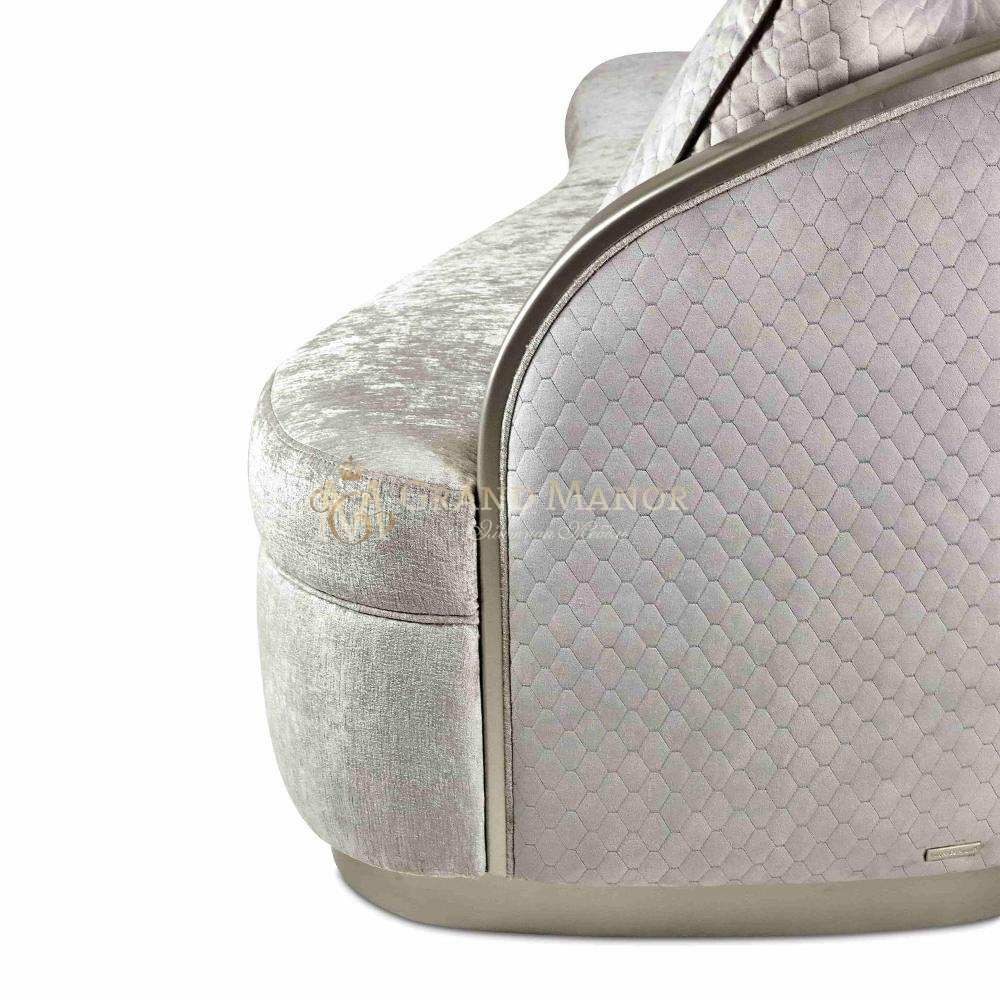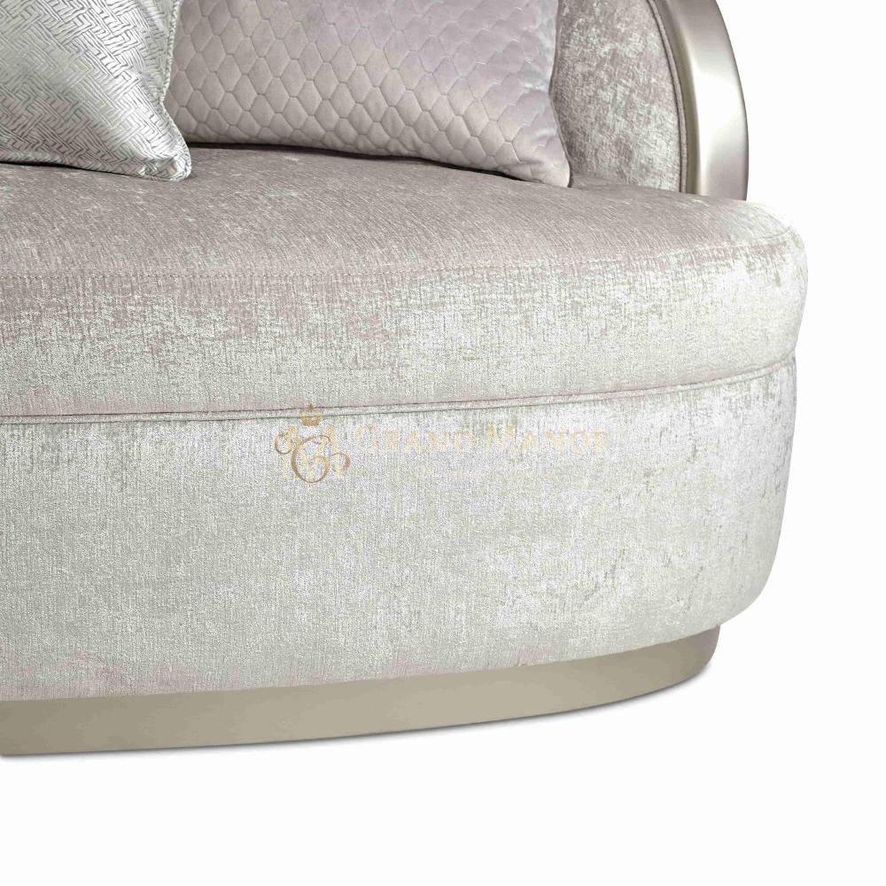 С диваном Lanna вам будет легко жить своей лучшей жизнью. Этот диван с изогнутыми подлокотникам, шикарными платиновыми акцентами и сияющей эстетикой роскоши представляет собой идеальное сочетание современности и гламура.