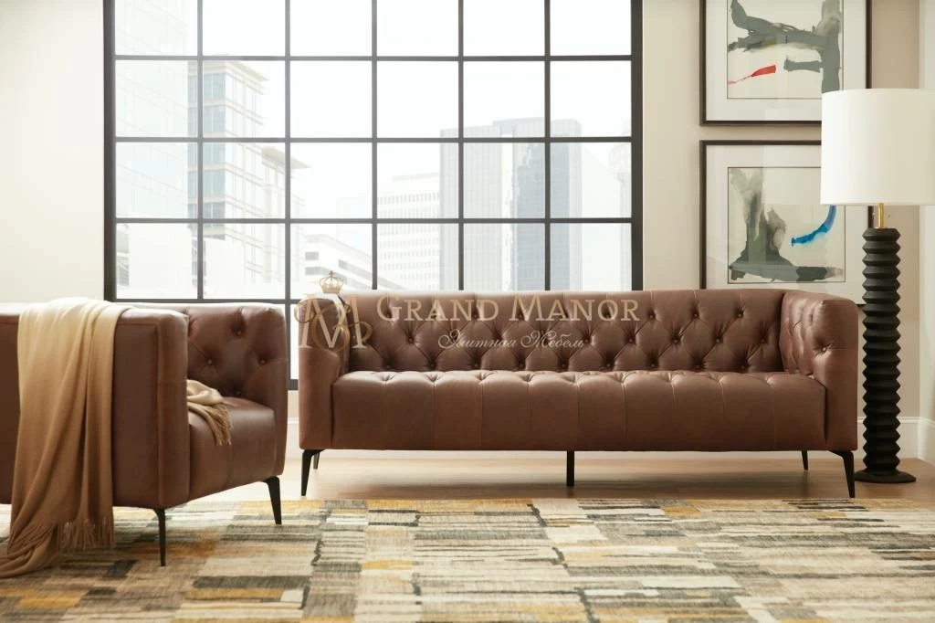 Диван простеган пуговицами в технике "Каретная стяжка".