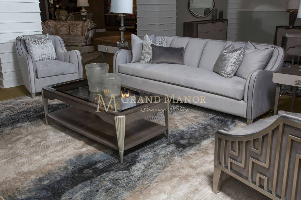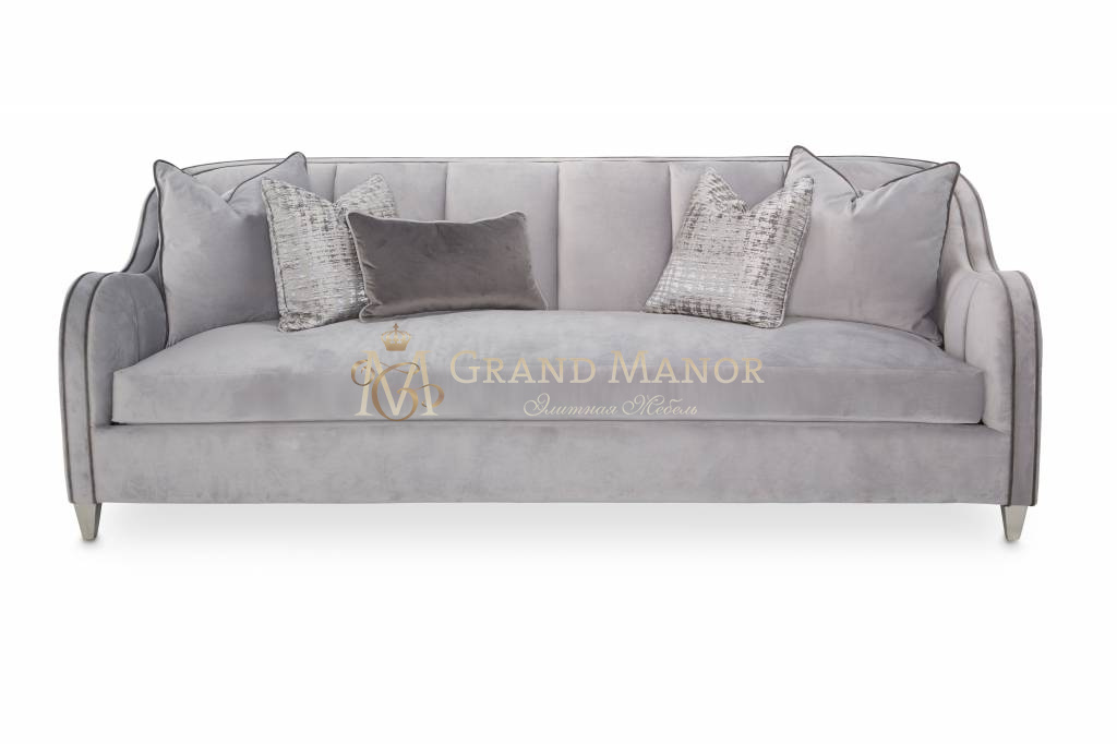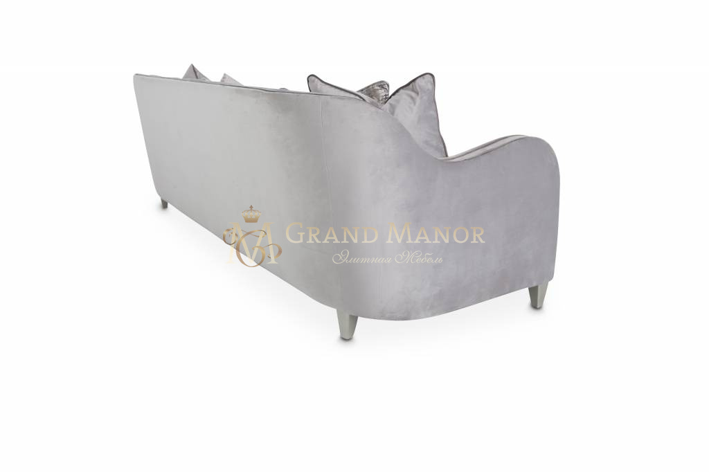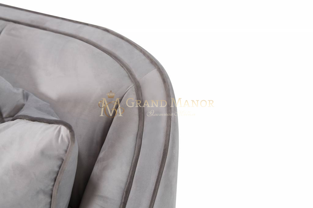 Диван обит бледно-серым бархатом.