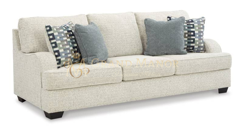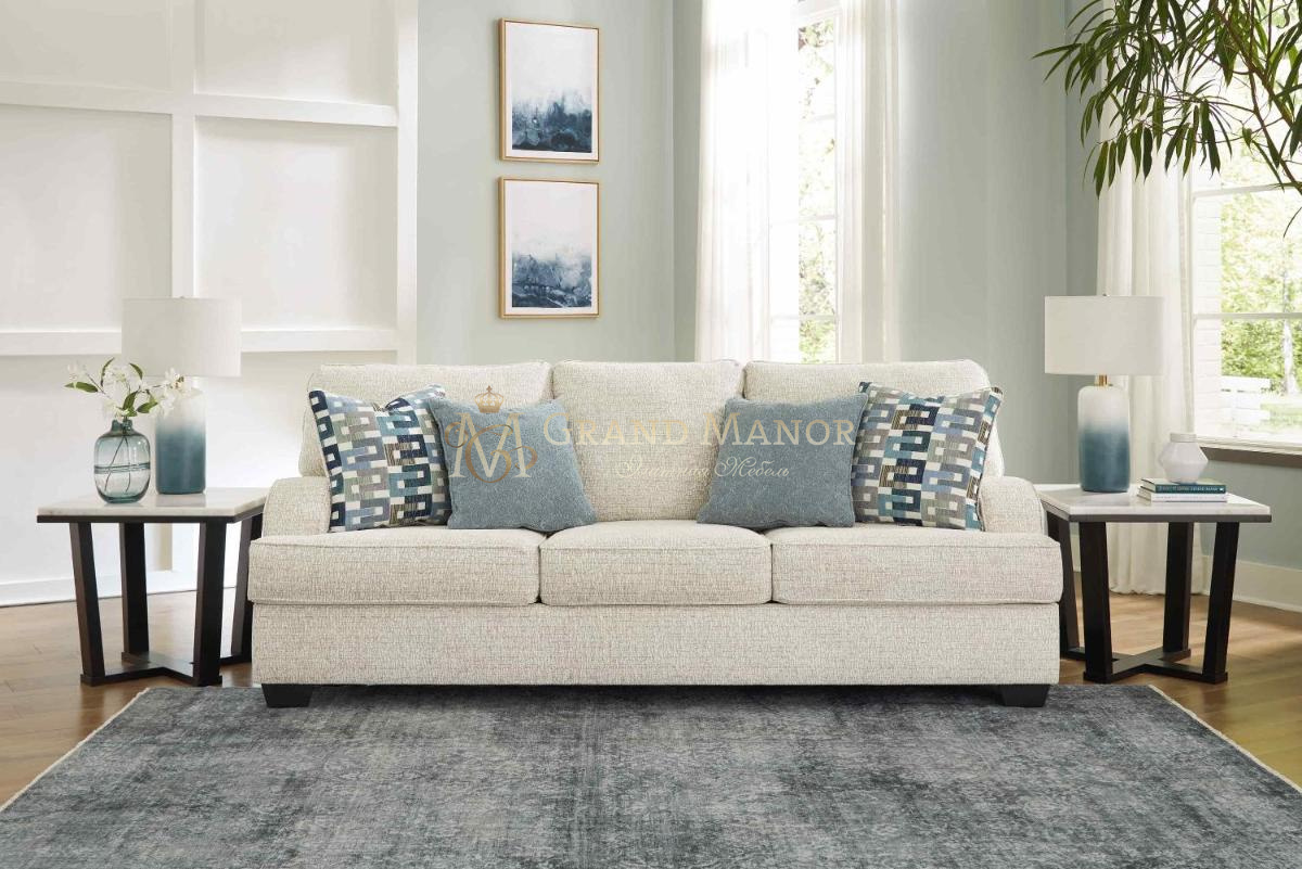 Этот диван сочетает в себе повседневный современный стиль и повседневный комфорт. Шикарная и слегка инновационная обивка из синели с заштрихованной штриховкой представляет собой дальновидный взгляд на модные нейтральные цвета.