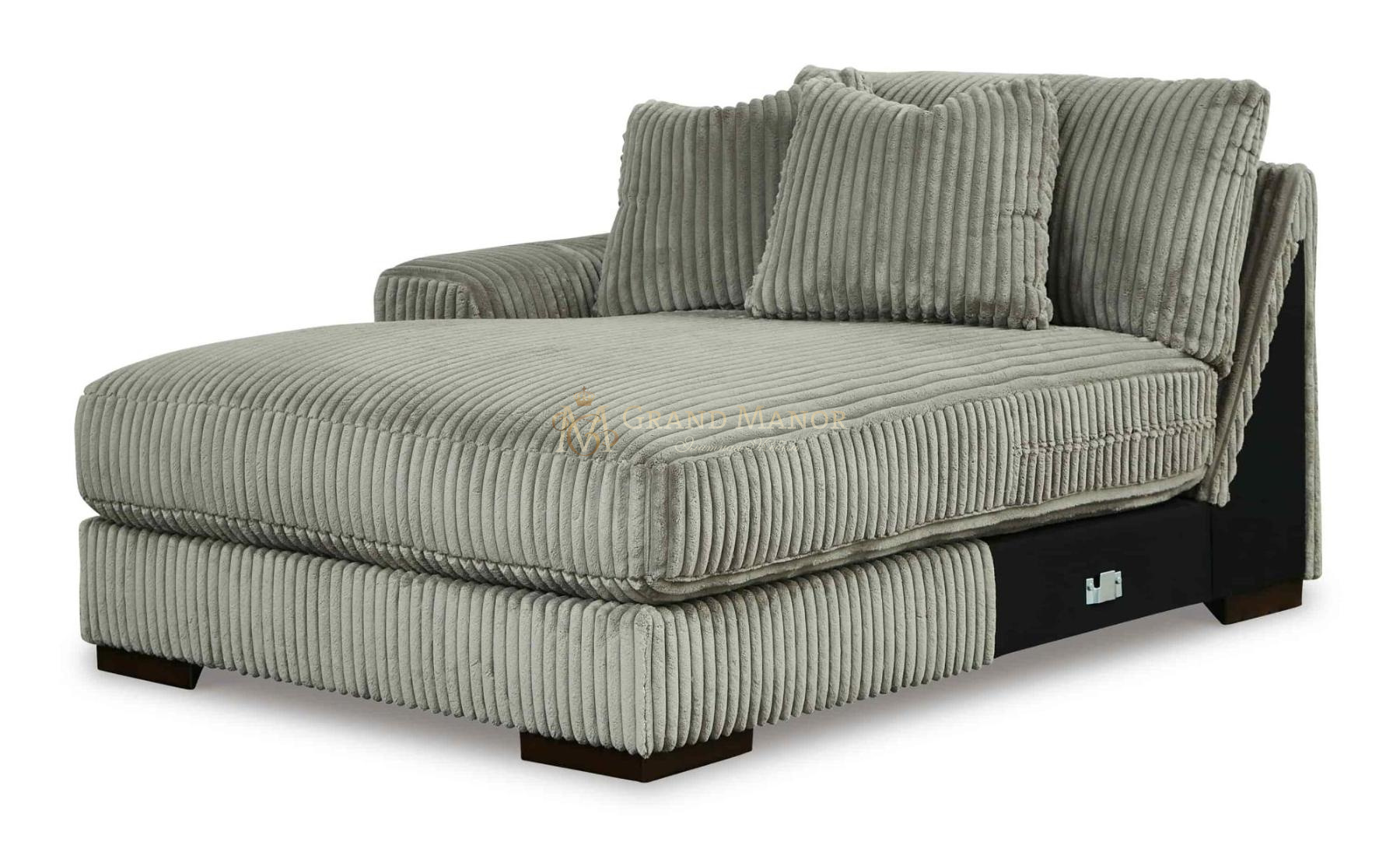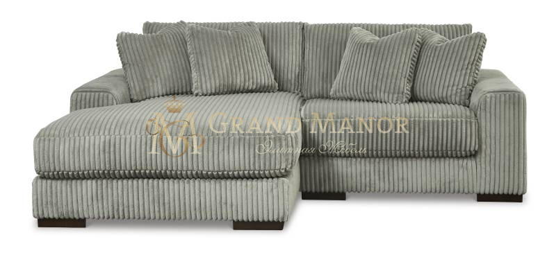 Плюшевый и шикарный. Продемонстрируйте свой взгляд на модную текстуру с помощью эффектной шнуровой обивки этого секционного дивана с кушеткой.