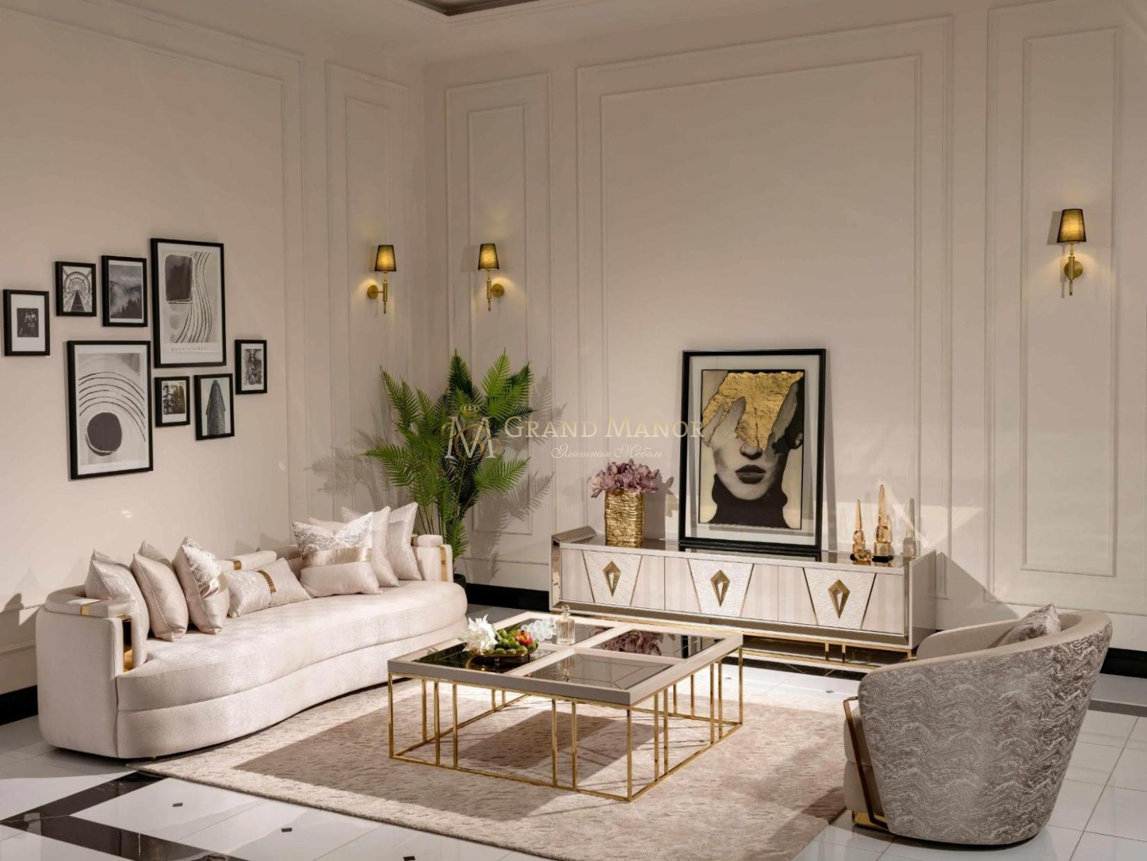 Великолепное творение, излучающее утонченность и снисходительность, несомненно, станет ярким украшением любого жилища. Обернутое в неброскую жаккардовую ткань, это изысканное изделие дополнено металлическими ремешками из титаново-золотого сплава, добавляющими дополнительный слой роскоши к его и без того потрясающему дизайну.