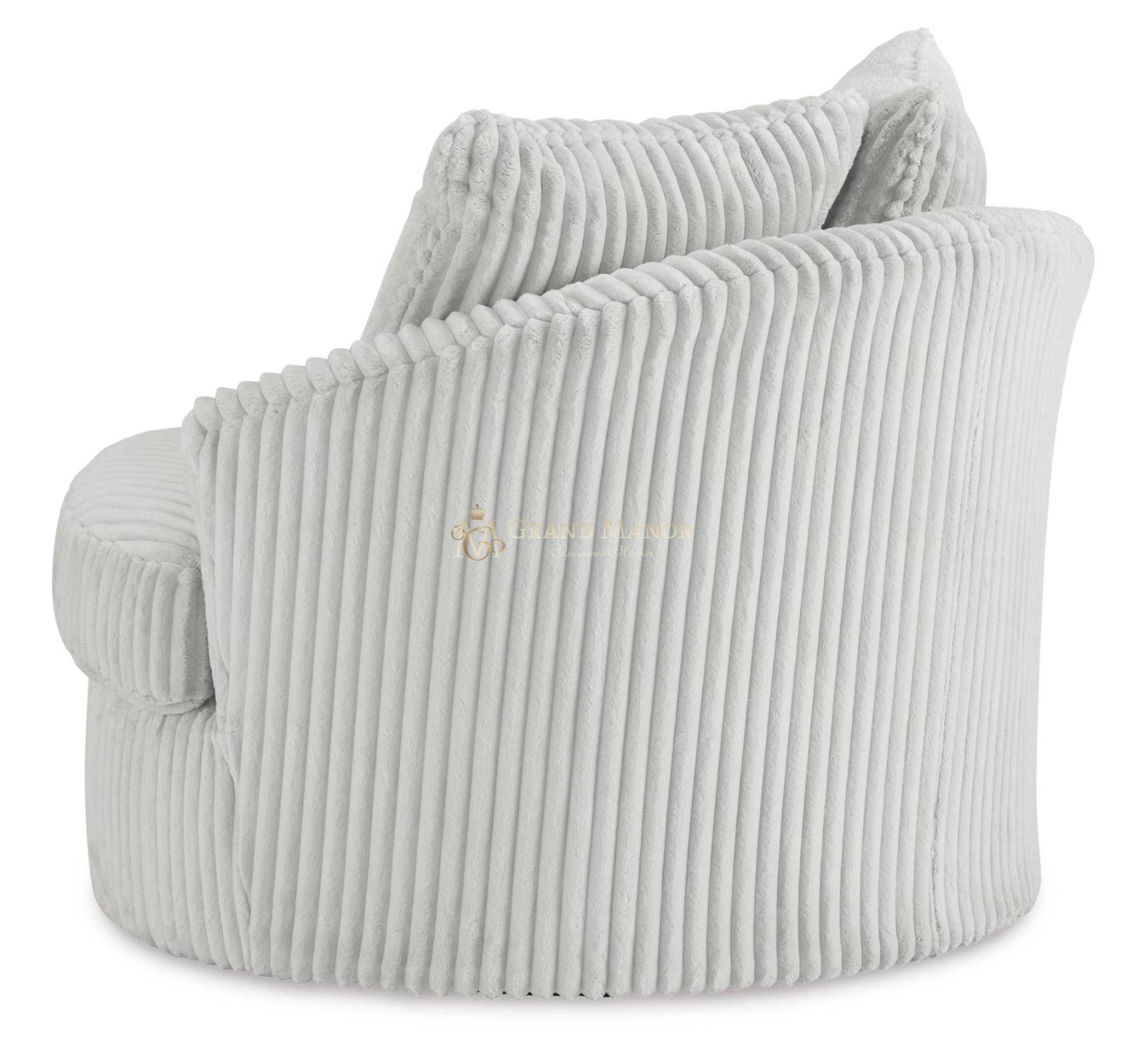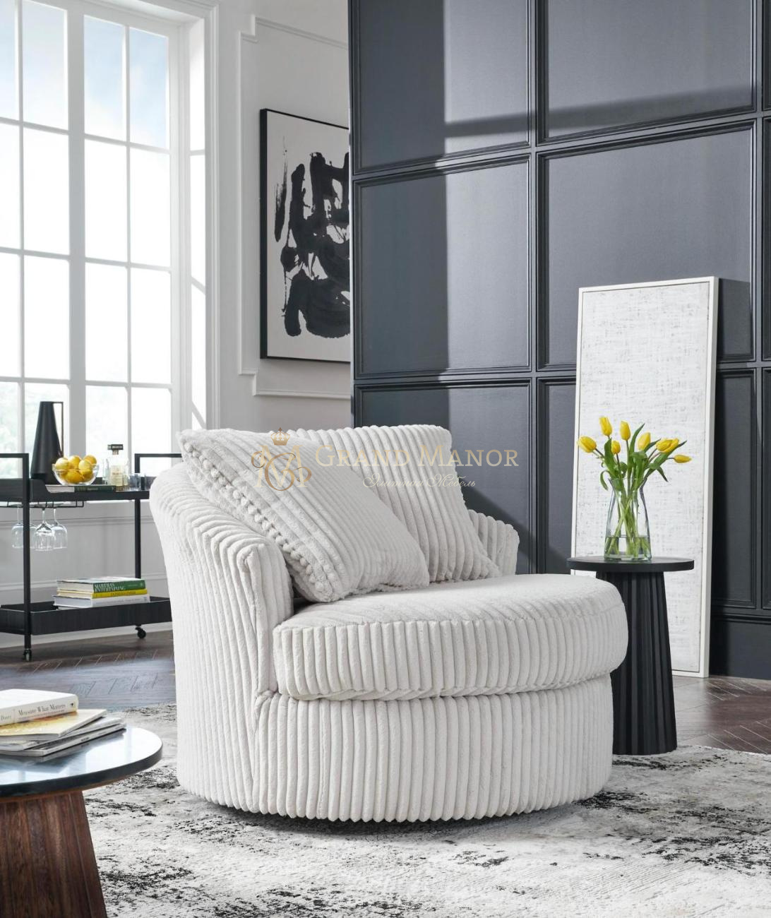 Это вращающееся кресло — воплощение стиля и комфорта. Его мягкая и нейтральная вельветовая обивка создает ощущение прохлады и прекрасно сочетается с современным интерьером. Декоративные подушки добавляют уюта и создают атмосферу домашнего тепла. А плавный поворот на 360 градусов позволяет вам расслабиться и отдаться течению времени. Вы уже знаете, что не сможете устоять перед искушением прокатиться на этом кресле.