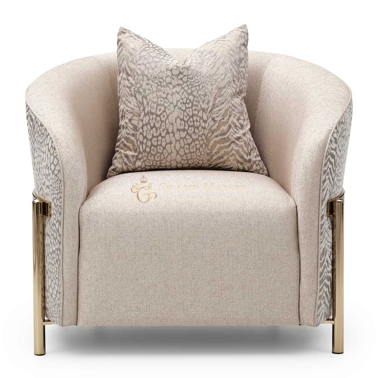 Lisbon готов сделать ваше жилое пространство сияющим! Эта группа, созданная с изысканными изгибами, шикарными нейтральными тонами, подчеркнутыми металлической рамой цвета светлого золота, и тканями из шенилла, несомненно, добавит роскоши и гламура в ваш дом. А столики добавляют последний штрих.