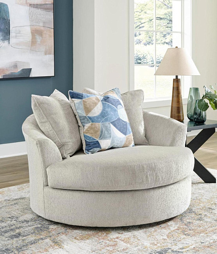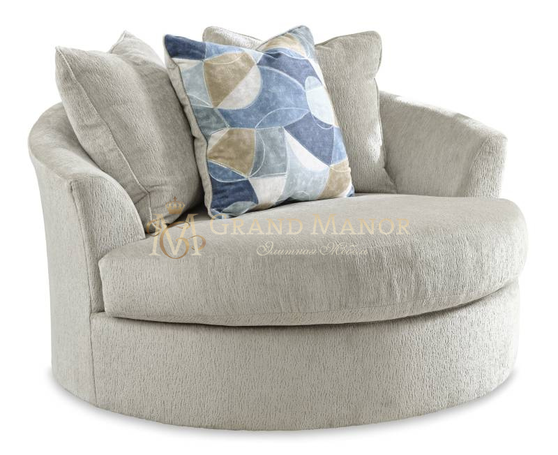 Это большое вращающееся кресло с акцентным дизайном сочетает в себе свежесть и модность с функциональностью. Оно идеально отражает ваши современные городские вкусы и остается универсальным, независимо от того, как меняется ваш стиль. Мягкая обивка и возможность поворота на 360 градусов делают это кресло по-настоящему удобным и комфортным. Баловать себя ежедневным отдыхом никогда не было так шикарно!