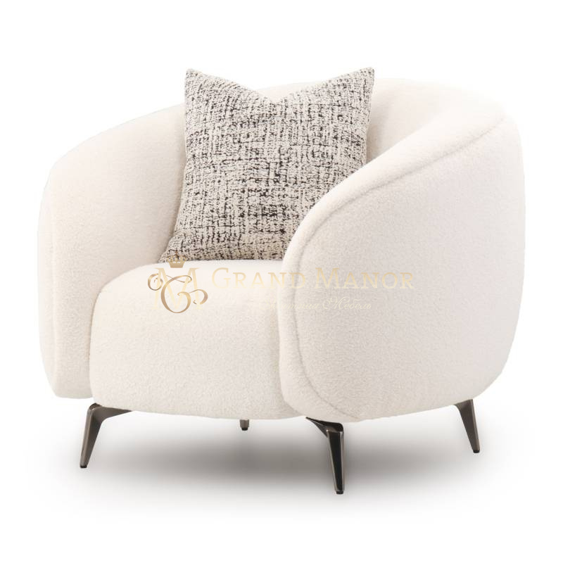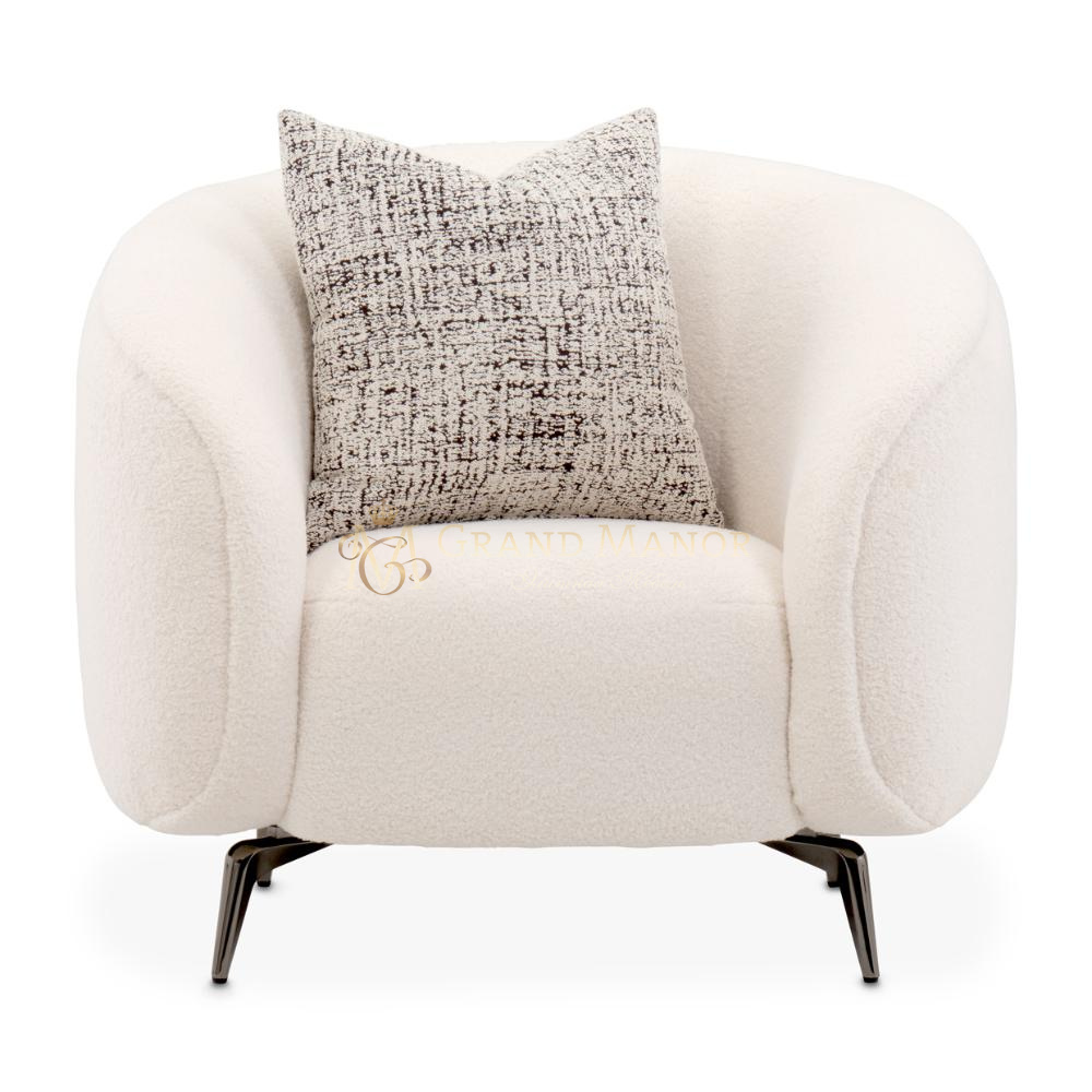 Черные никелированные ножки кресла подчеркивают его утонченный дизайн, делая его привлекательным для современных жилых помещений.