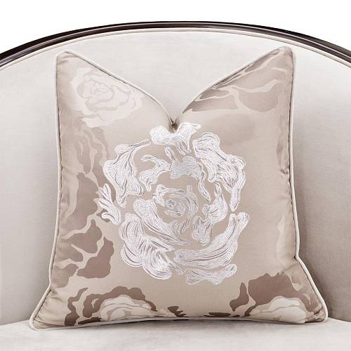 Акцентная подушка набита перьями и имеет чехол на молнии.