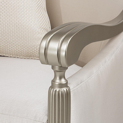 Изогнутые подлокотники, переходящие в рифленые передние ножки.