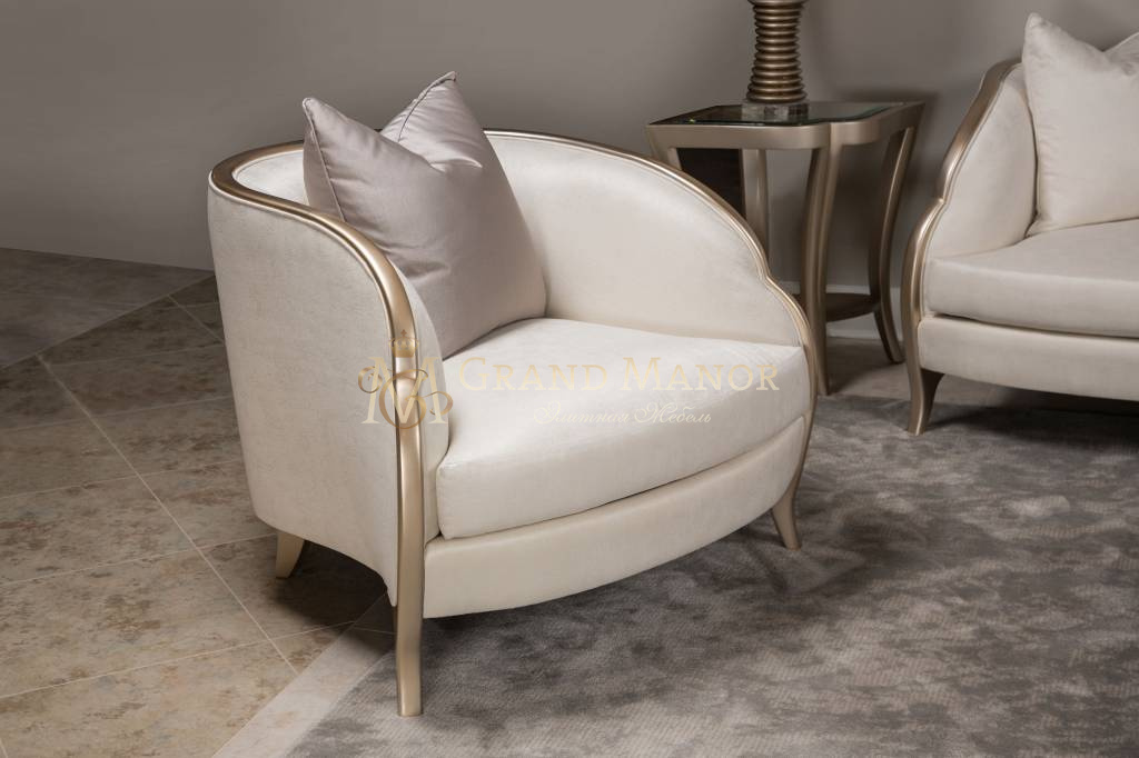 Рама с V-образным вырезом на подлокотниках выполнена в цвете Шардоне.