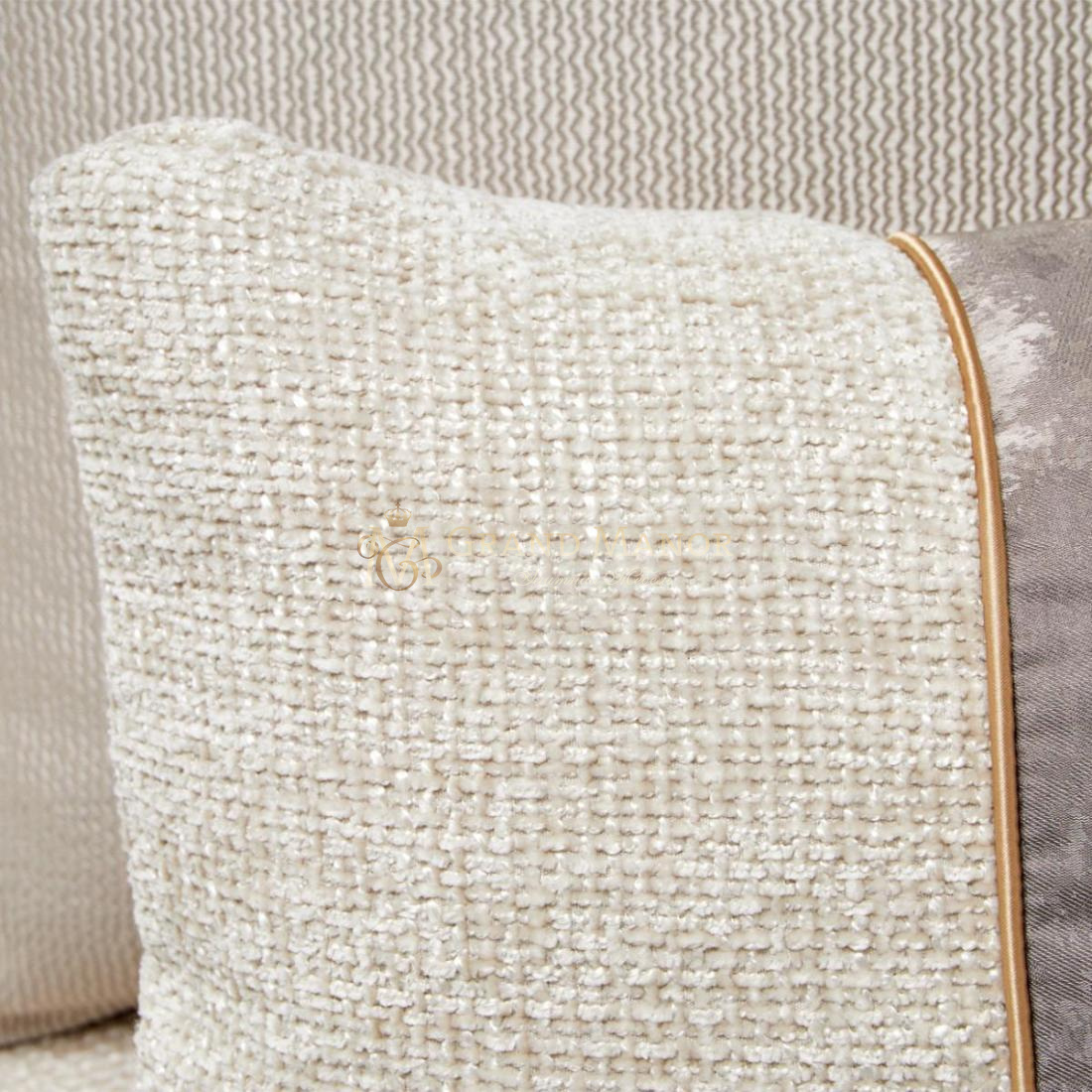 Акцентные подушки наполнены пером, а чехлы снабжены молниями.