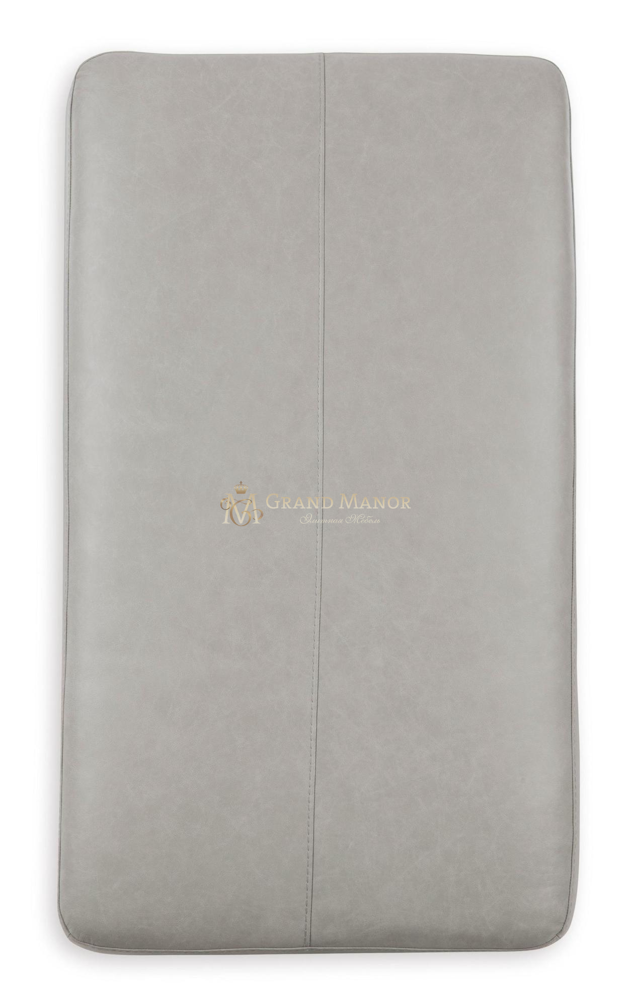 Подушка этого пуфика, с её богатой текстурой и декадентской мягкостью, обтянута искусно подобранной кожей и искусственной обивкой в модном нейтральном тоне. А его щедрый размер и чистый профиль делают его просто великолепным.