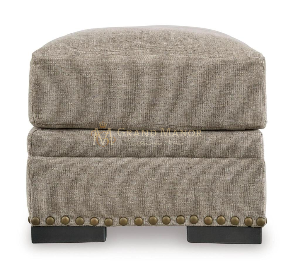 Хотите придать своему дому изысканный и элегантный вид? Этот пуфик — идеальное решение! Он сочетает в себе утончённый дизайн с комфортом и элегантностью, а его тональные цвета и акценты в виде шляпок гвоздей создают атмосферу уюта.