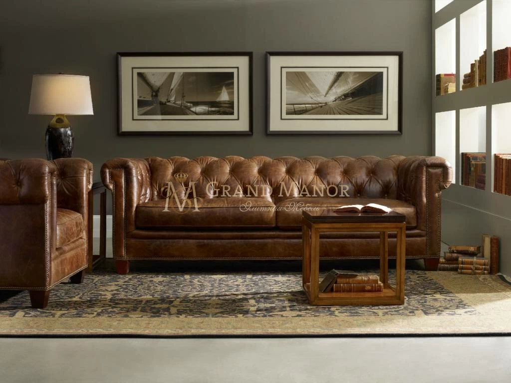 Легенда мягкой мебели - классический кожаный диван Chester простеган пуговицами в технике "Каретная стяжка" - символ статуса и брутальности.
