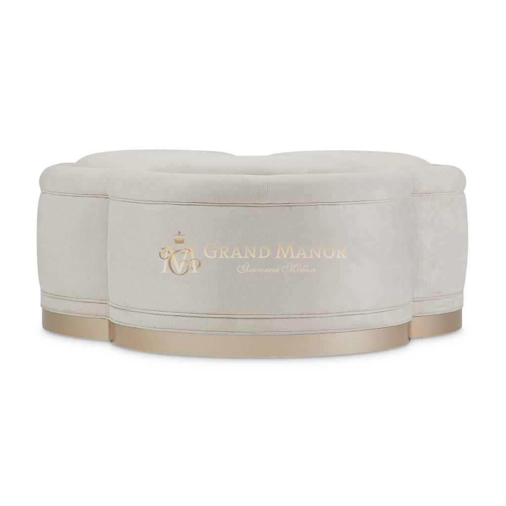 Пуфик Malibu Crest - универсальный, элегантный акцент с использованием ткани из искусственной замши приятного цвета натуральной кожи. Это мягкое изделие в форме клевера достаточно прочное, чтобы служить столиком для коктейлей, при этом оставаясь удобным для сидения или опоры ног. Вам понравится гламурная основа из шардоне и то, как этот дизайн подчеркнет роскошь вашего помещения.