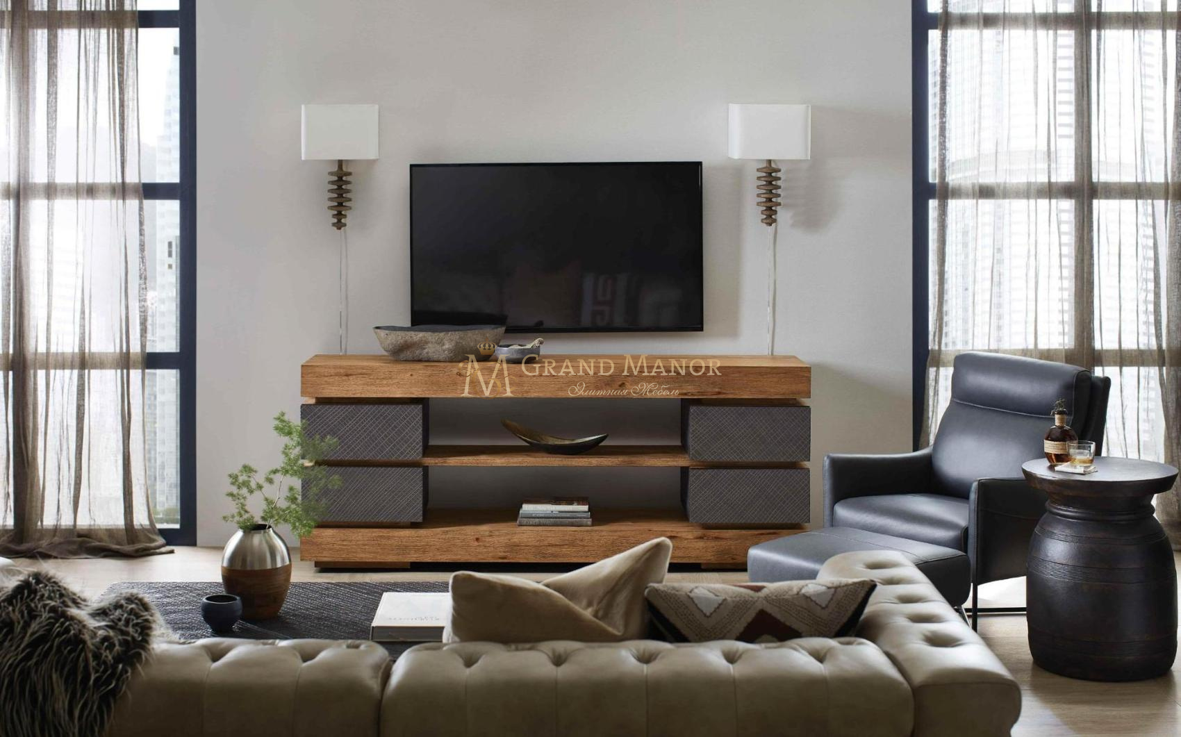 С помощью консоли Big Sky Entertainment вы сможете погрузиться в атмосферу дикой природы Америки. Эта консоль, рассчитанная на размещение телевизора диагональю до 80 дюймов, имеет двухцветную отделку.