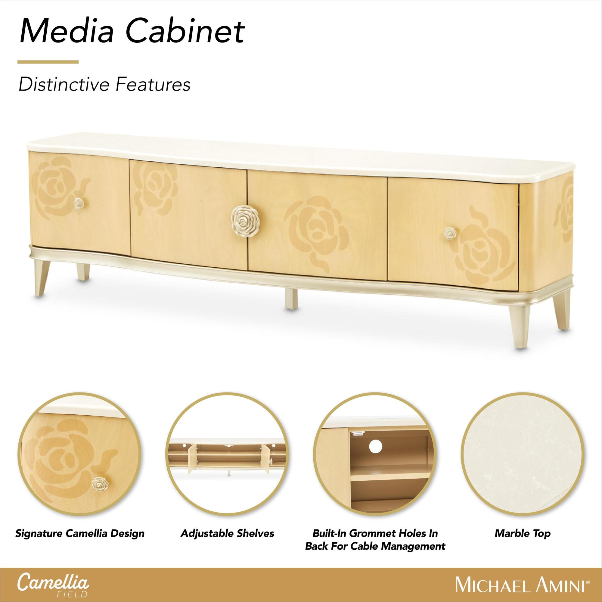 Оформите свое развлекательное пространство в неповторимом стиле с помощью медиа-консоли Camellia Field. Этот предмет мебели сочетает в себе элегантность и функциональность.