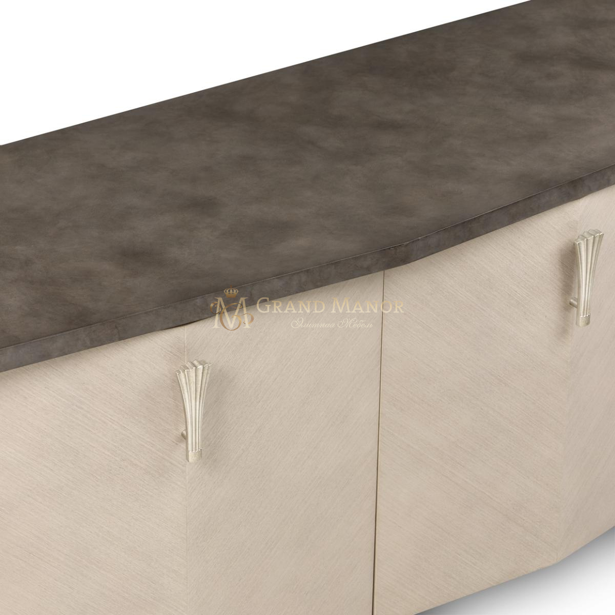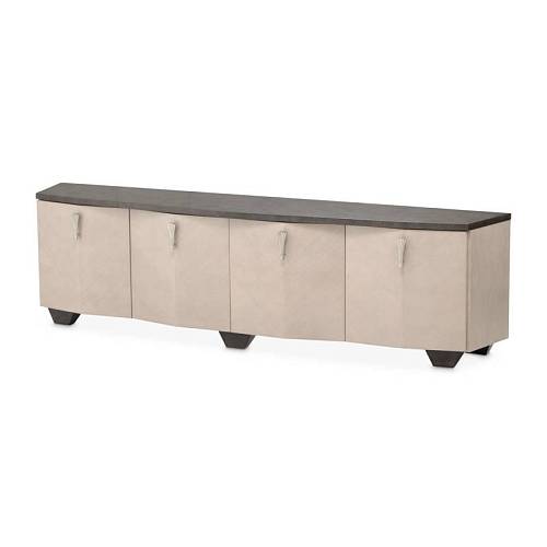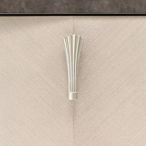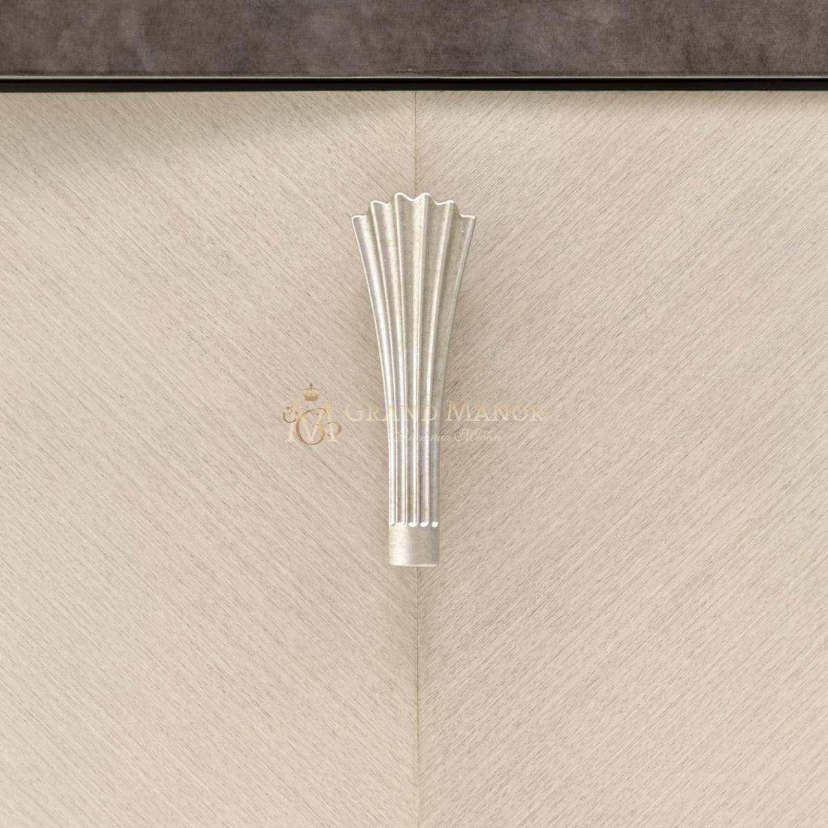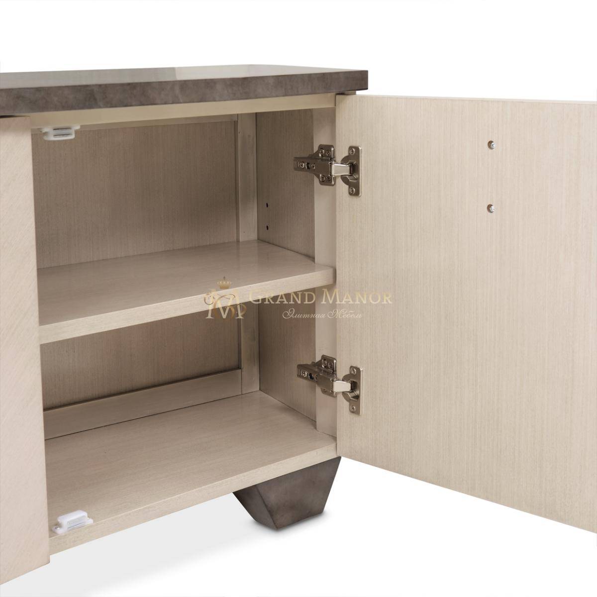 Медиа-тумба Fantosini — воплощение утонченной элегантности. Она гармонично впишется в любое изысканное жилое пространство. Мягкий архитектурный силуэт с плавными углами облицован дубовым шпоном. Серебристая патина придает скульптурным линиям деликатное мерцание. Контрастный верх с дымчатым оттенком добавляет интерьеру глубины и привлекает внимание. Внутри тумбы — сочетание стационарных и регулируемых полок для удобного хранения. Широкая поверхность идеально подходит для размещения телевизоров до 88 дюймов или демонстрации роскошных предметов декора.