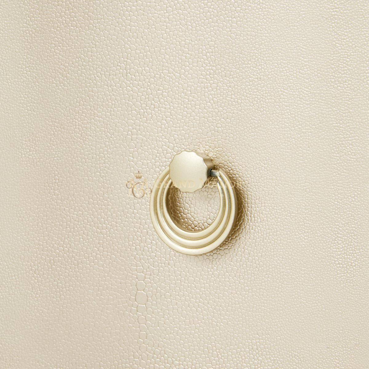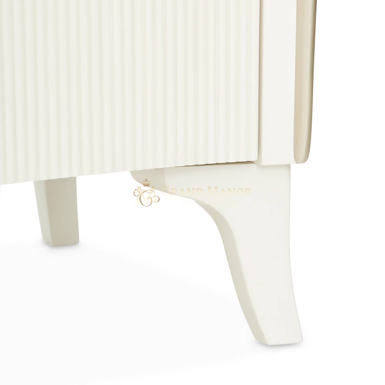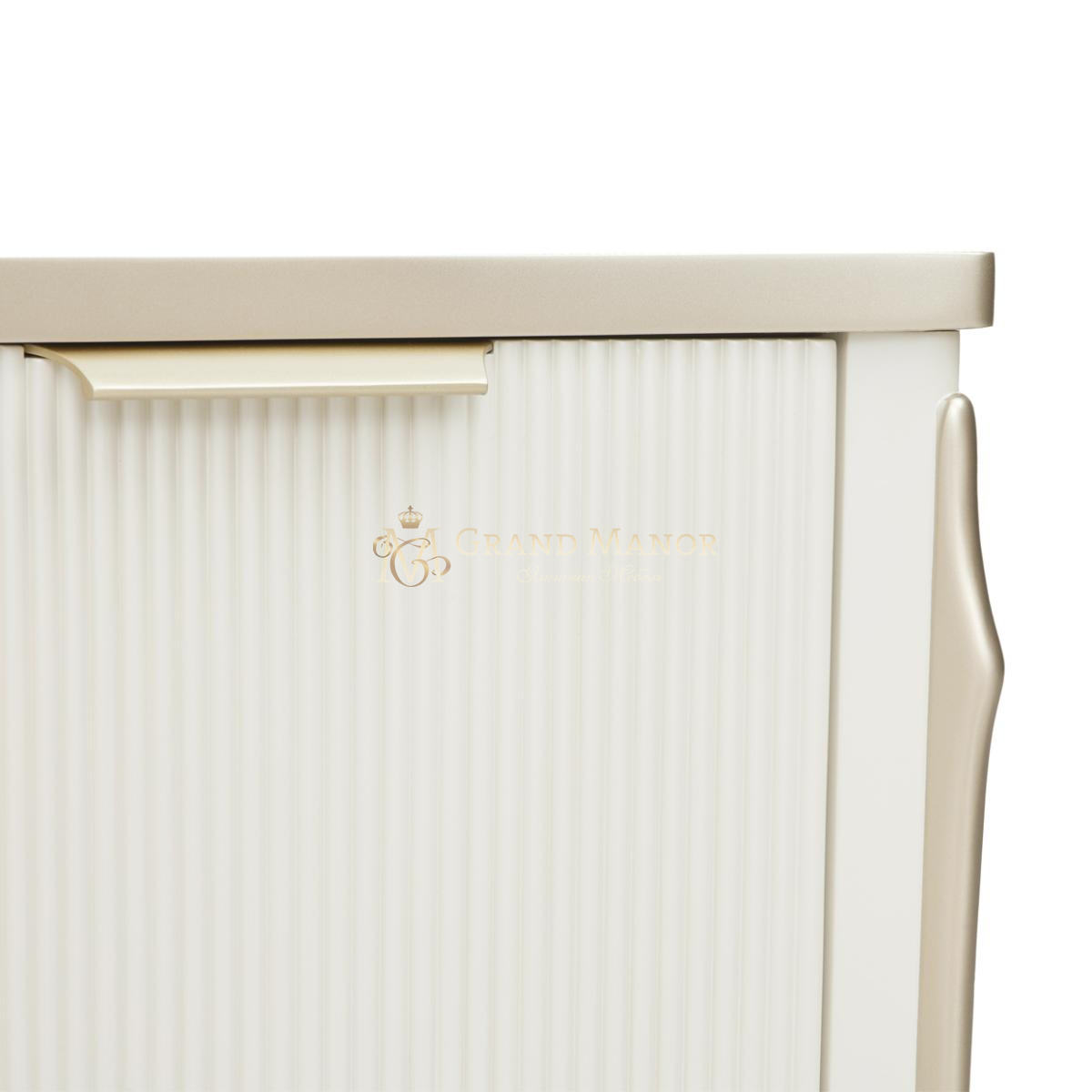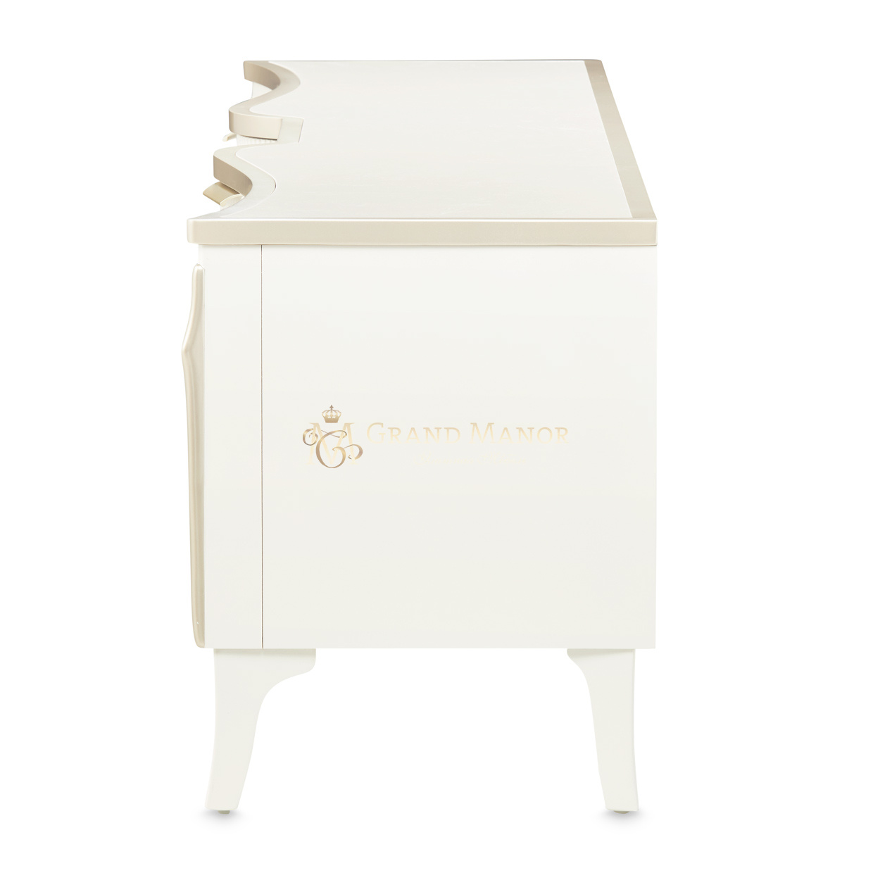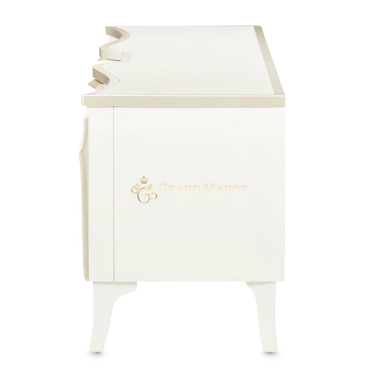 В медиа-консоли La Marisia элегантность и функциональность сливаются в единое целое. Это изделие, созданное для того, чтобы привлекать внимание, отличается изящно изогнутым силуэтом, выполненным в нежном жемчужном оттенке с акцентами цвета шампанского.