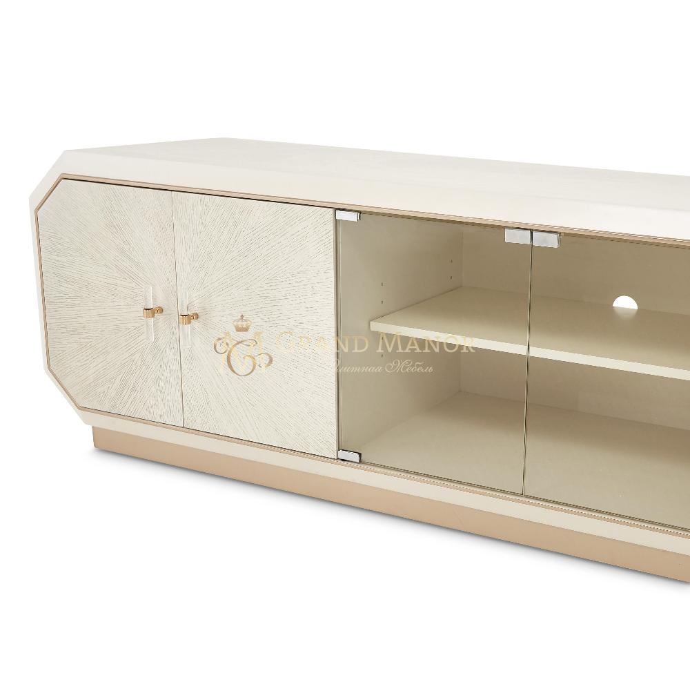 Тумба в светлых тонах шампанского с акцентами цвета шардоне.