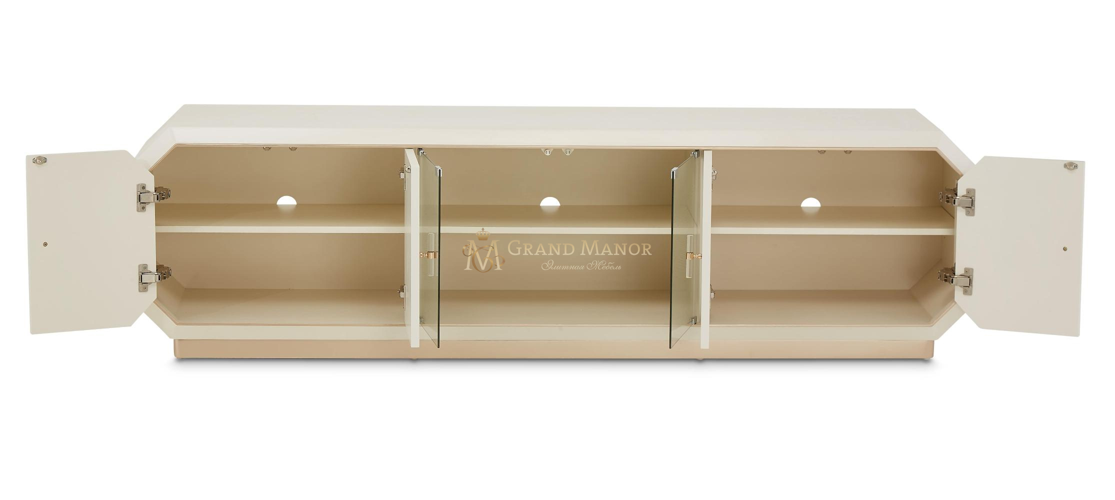 Развлекайтесь стильно с медиа-шкафом La Rachelle! Оптимизируйте пространство и разместите свои вещи за дверцами шкафа, демонстрируя при этом свой лучший декор и медиа-материалы за стеклом!