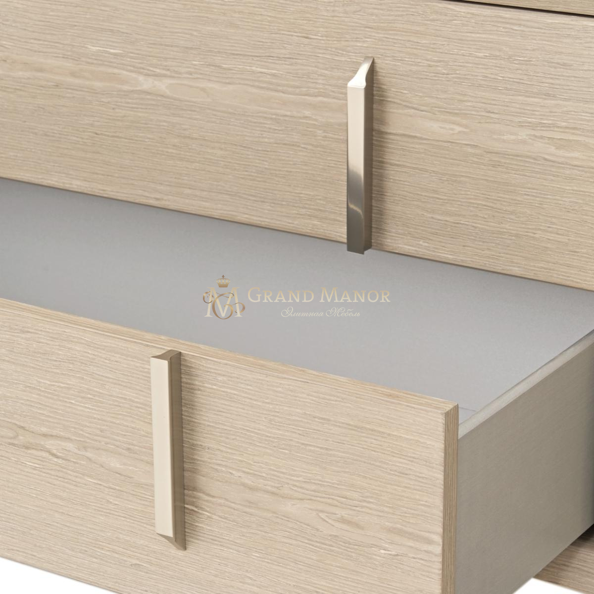 Матовая металлическая фурнитура сочетается с оттенками натурального дерева, создавая тонкую игру текстур, которые облагораживают любое жилое пространство.
