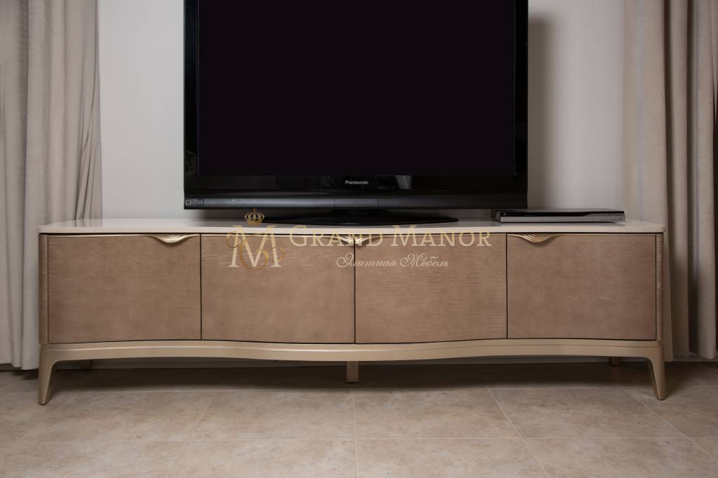 Содержит четыре рельефных шкафа с изогнутыми ручками.