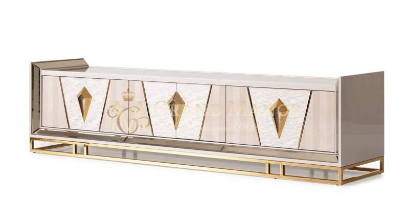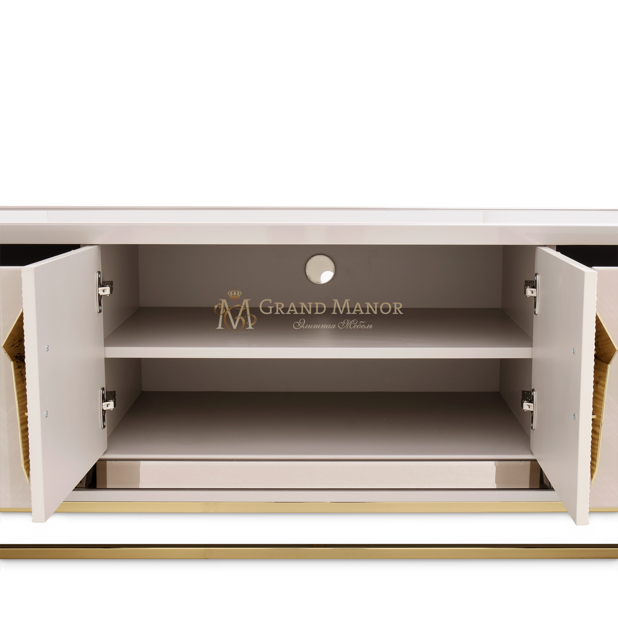Потрясающая геометрия этого медиа-шкафа действительно впечатляет, и он, несомненно, станет центральным элементом любого помещения.