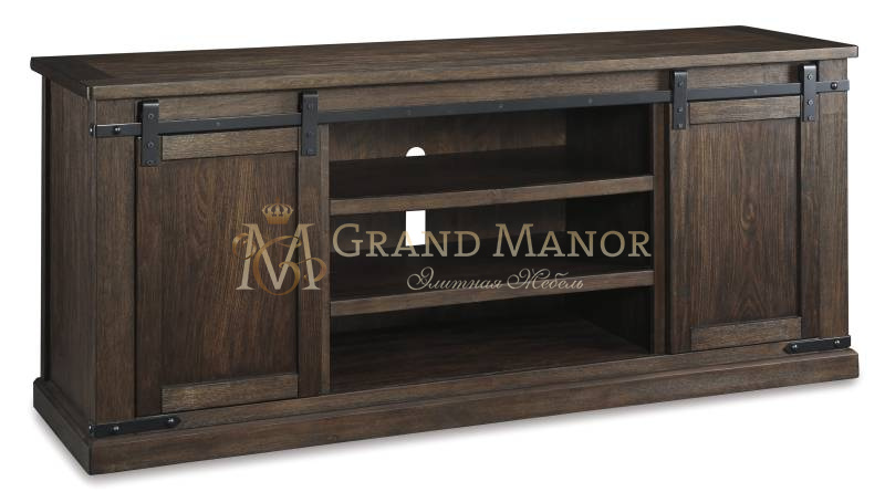Добавьте нотку деревенского стиля в свою гостиную с помощью этой большой 70-дюймовой подставки для телевизора. Она визуально привлекательна и обладает необходимой вам гибкостью. Регулируемые торцевые полки обеспечивают много места для хранения, а две стационарные средние полки вместительны для размещения мультимедийного оборудования. Две раздвижные двери можно легко расположить по вашему желанию. Чтобы выглядеть лаконично, сдвиньте дверцы с двух концов и используйте эти места для скрытого хранения — вот и все.