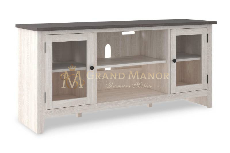 Благодаря двухцветной отделке и минималистскому шарму эта подставка для телевизора идеально сочетается с вашим непринужденным подходом к высокому стилю. Красиво созданный для размещения вашего мультимедийного оборудования, он хорошо оснащен регулируемыми полками, вырезами для прокладки проводов и парой стеклянных передних дверей, которые подчеркивают эстетику чистоты. Внешний вид идеально подходит для современного загородного дома и современной обстановки.