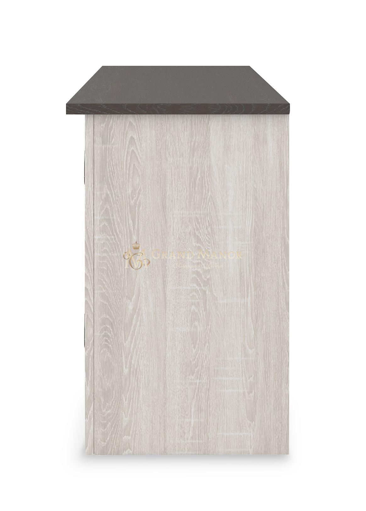 - Двухцветная отделка (столешница из серого дерева и антикварно-белое основание).