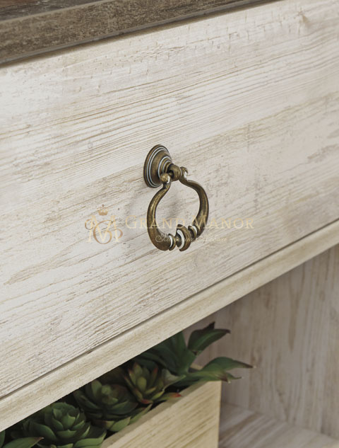 Его выбеленная отделка удивительно приятна для глаз, а текстура досок заставляют нас мечтать о морских закатах. Наполненные потенциалом, две дверцы шкафа с кольцевыми ручками открывают скрытое пространство для хранения.