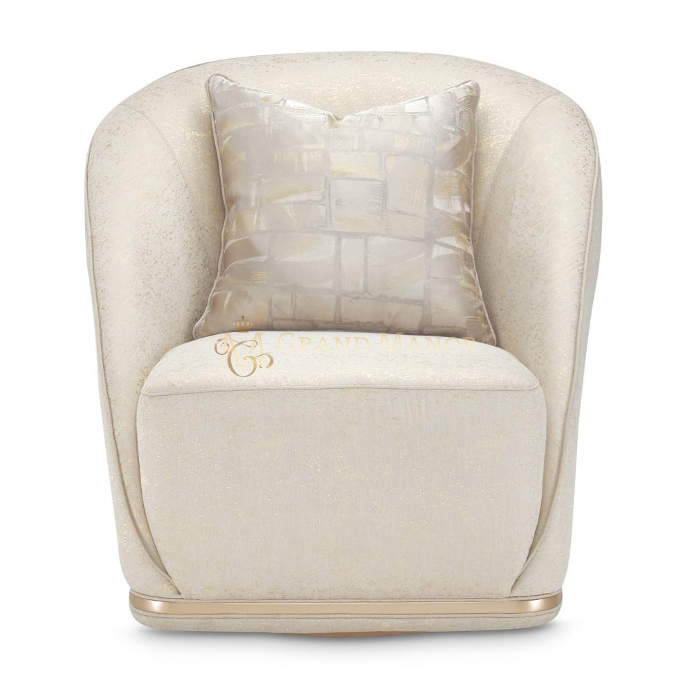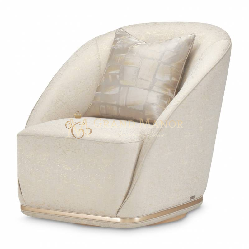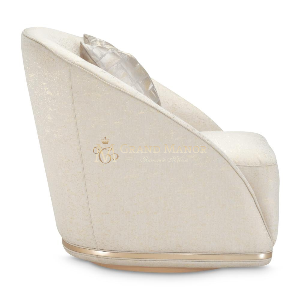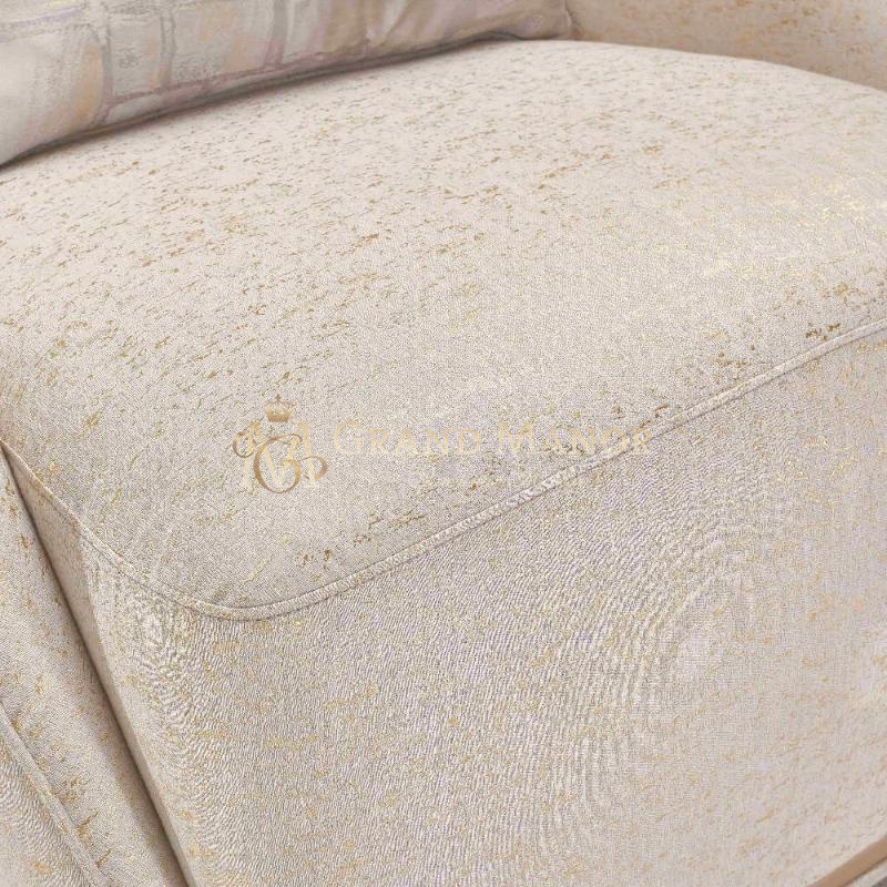 Это кресло отделано прекрасной тканью цвета платины и золота, которая потрясающе смотрится со всех сторон.