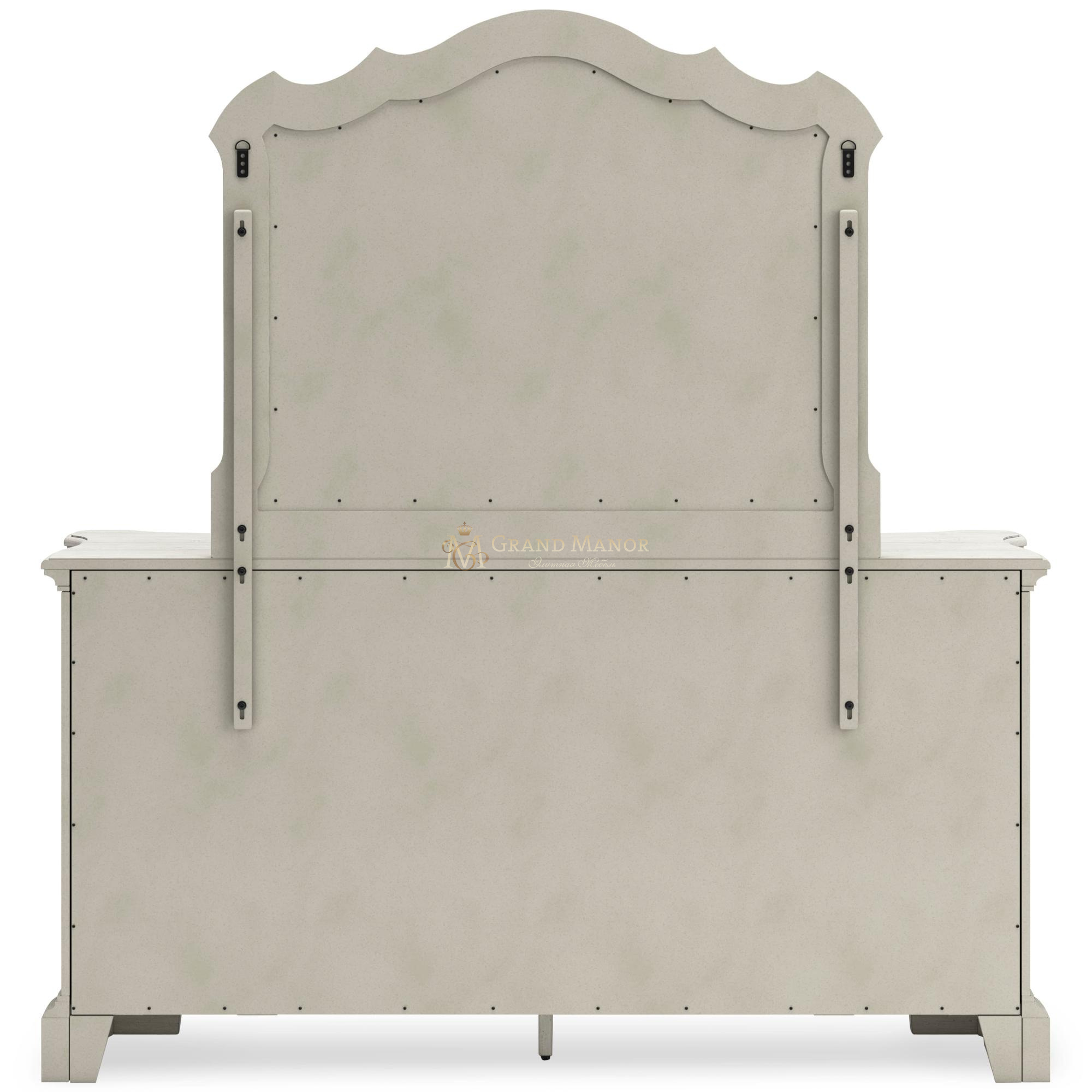 Добавьте нотку романтики в свою спальню с помощью этого зеркала. Его отделка, окрашенная в старинный белый цвет, и детали изогнутого силуэта олицетворяют непринужденную элегантность.