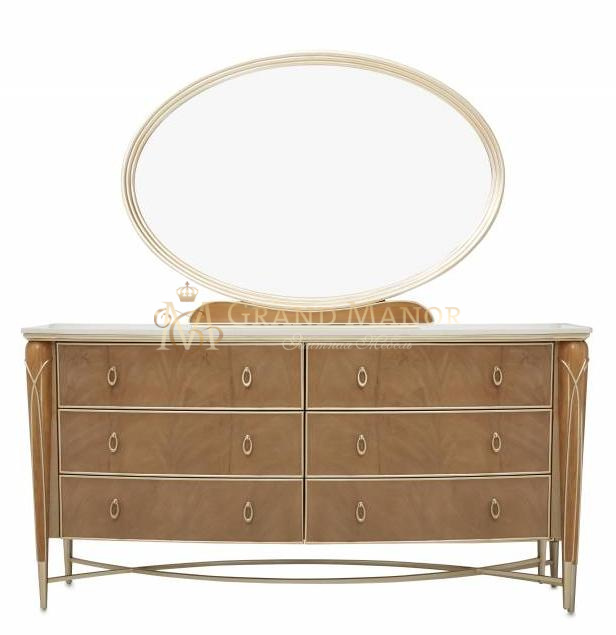 Благодаря изящной форме и размашистым акцентам зеркало для комода Villa Cherie создает красивое пространство.