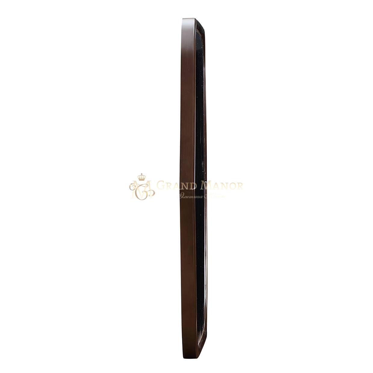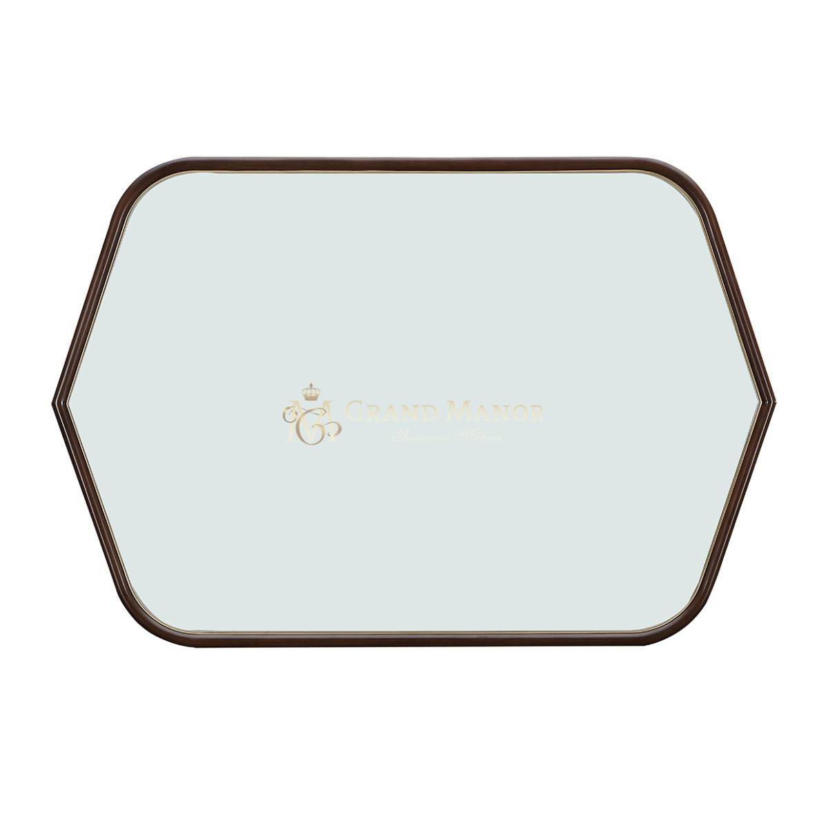 Зеркало обрамлено ореховым деревом и украшено изящной золотой отделкой, что придает ему теплоту и неповторимость. Его уникальная форма становится художественным акцентом в любом помещении, будь то комод в стиле Houston, расположенное над сервантом или просто на стене как самостоятельный элемент декора