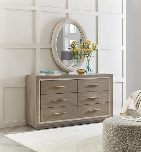 Овальное зеркало Amelia Mirror, вдохновленное непринужденной жизнью на берегу моря, имеет текстурированную отделку, доступную в белом или выветренном сером цвете, и скошенный край для придания стильной простоты.