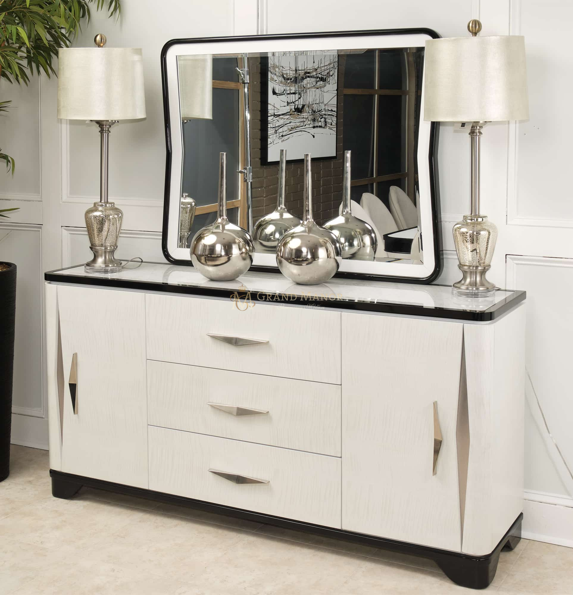Отразите красоту и элегантность с помощью зеркала Tuxedo, которое станет идеальным дополнением к любой изысканной обстановке. Обрамленное изысканным белым шпоном анигре и отделкой Piano Keyboard, это зеркало подчеркивает свет и стиль в вашей комнате. Его большая прозрачная поверхность гарантирует, что вы будете выглядеть наилучшим образом, добавляя нотку стиля в вашу повседневную жизнь.