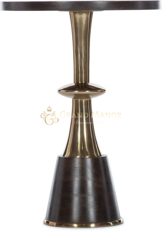 Верхняя часть и основание с отделкой из темного дерева с акцентом из золотистого металла в основании.
