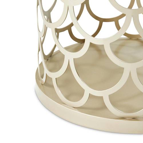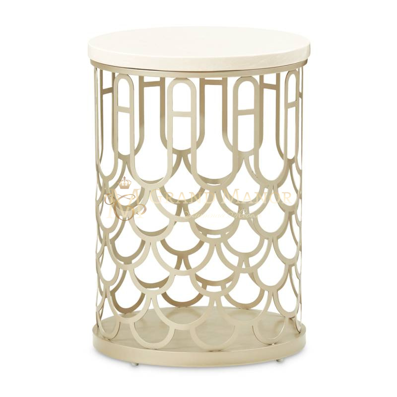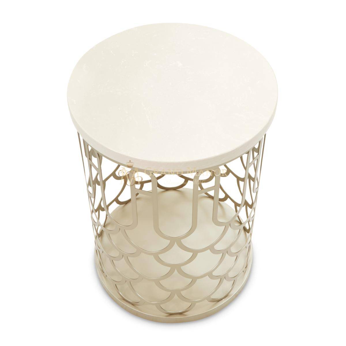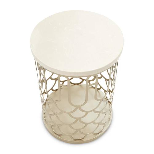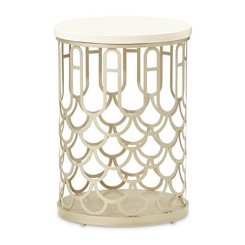 Столик La Marisia Chairside — это воплощение элегантности, способное добавить нотку артистизма в любое пространство. Столешница из искусственного мрамора создает роскошную поверхность, а металлическая основа цвета шампанского с замысловатым зубчатым рисунком добавляет изделию глубины и визуального интереса. Покрытие из порошковой краски обеспечивает долговечность и красоту, что делает этот стол ярким акцентом в любой обстановке.