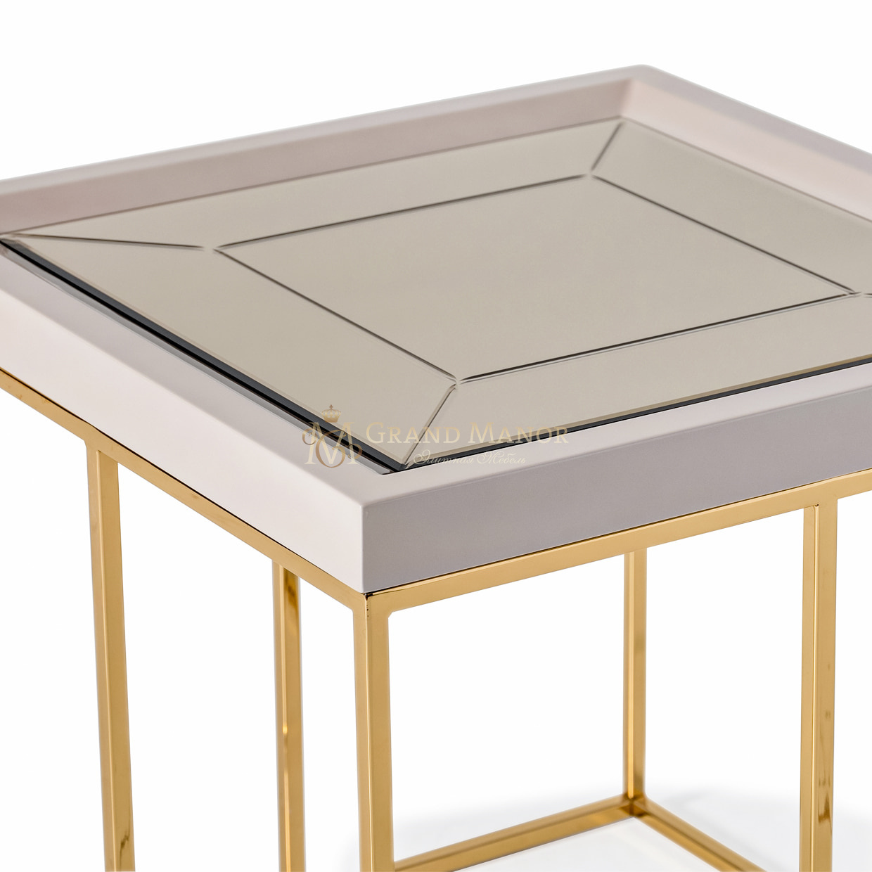 Мерцающая отделка цвета слоновой кости и ножки из титанового золота в тон создают роскошный и утонченный образ, который дополняет остальную коллекцию Carmela. Используйте его как приставной столик к своему любимому креслу или как акцентный столик в другой комнате и наслаждайтесь универсальностью и стилем, которые он придает.