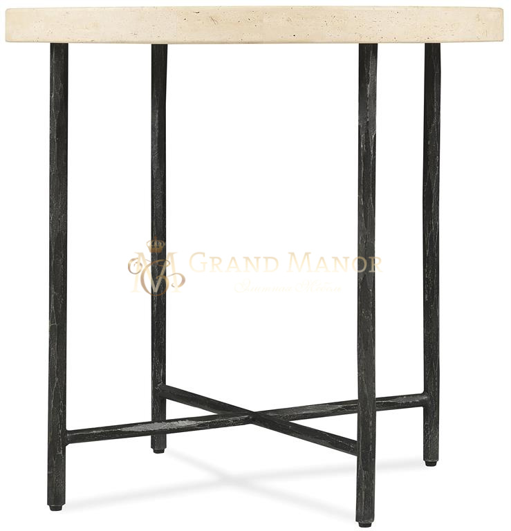 Компактный, но в то же время изысканный, этот круглый приставной столик имеет каменную столешницу, поддерживаемую текстурированным металлическим основанием с деталями в виде крестовины. Сочетание металла и камня создает тактильный, современный деревенский образ, который прекрасно сочетается с остальной коллекцией Driftwood.