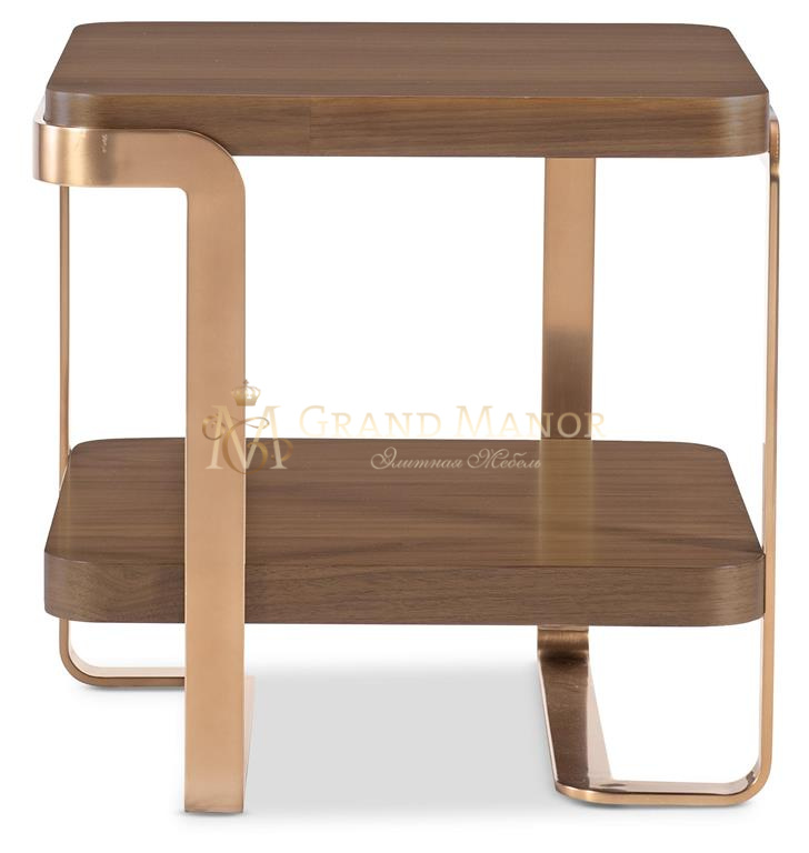 Столик Eleana - это стильное сочетание теплого светло-карамельного шпона грецкого ореха и гладкого металлического основания с покрытием. Благодаря мягко закругленному прямоугольному дизайну и одной несъемной деревянной полке он обладает функциональностью и высокой эстетичностью, что делает его идеальным акцентом для интерьеров переходного периода.